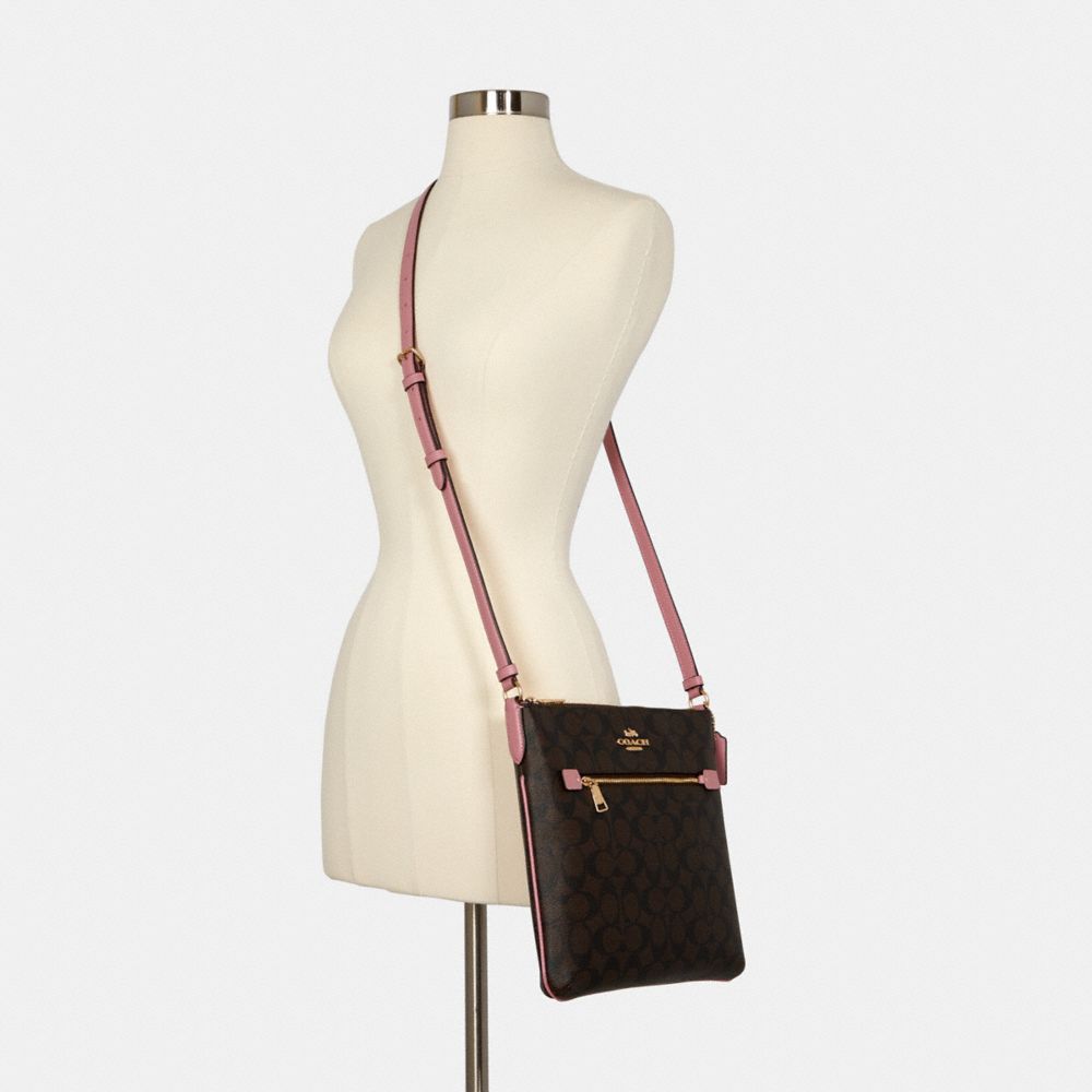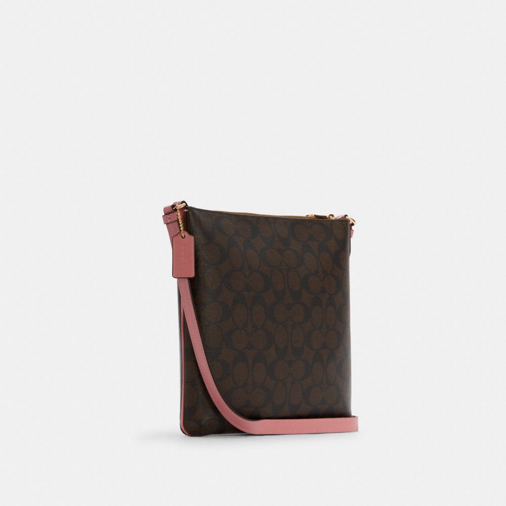 Signature coated canvas and smooth leather| Inside multifunction pocket| Zip-top closure, fabric lining| Outside zip pocket| Adjustable strap with 21 3/4" drop for shoulder or crossbody wear| 10 1/4" (L) x 9 3/4" (H) x 1 1/2" (W)Style No. C1554