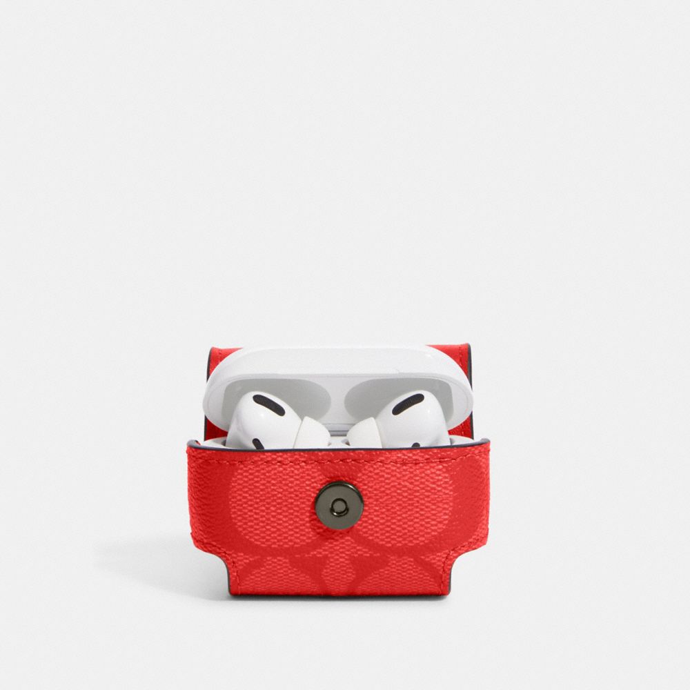 Signature coated canvas and refined calf leather| Snap closure, leather lining| Attached hinged key ring| 2 1/2" (L) x 2" (H) x 1" (W)| Fits AirPods Pro| AirPodsĀ® is a trademark of Apple, Inc.Style No. C1618