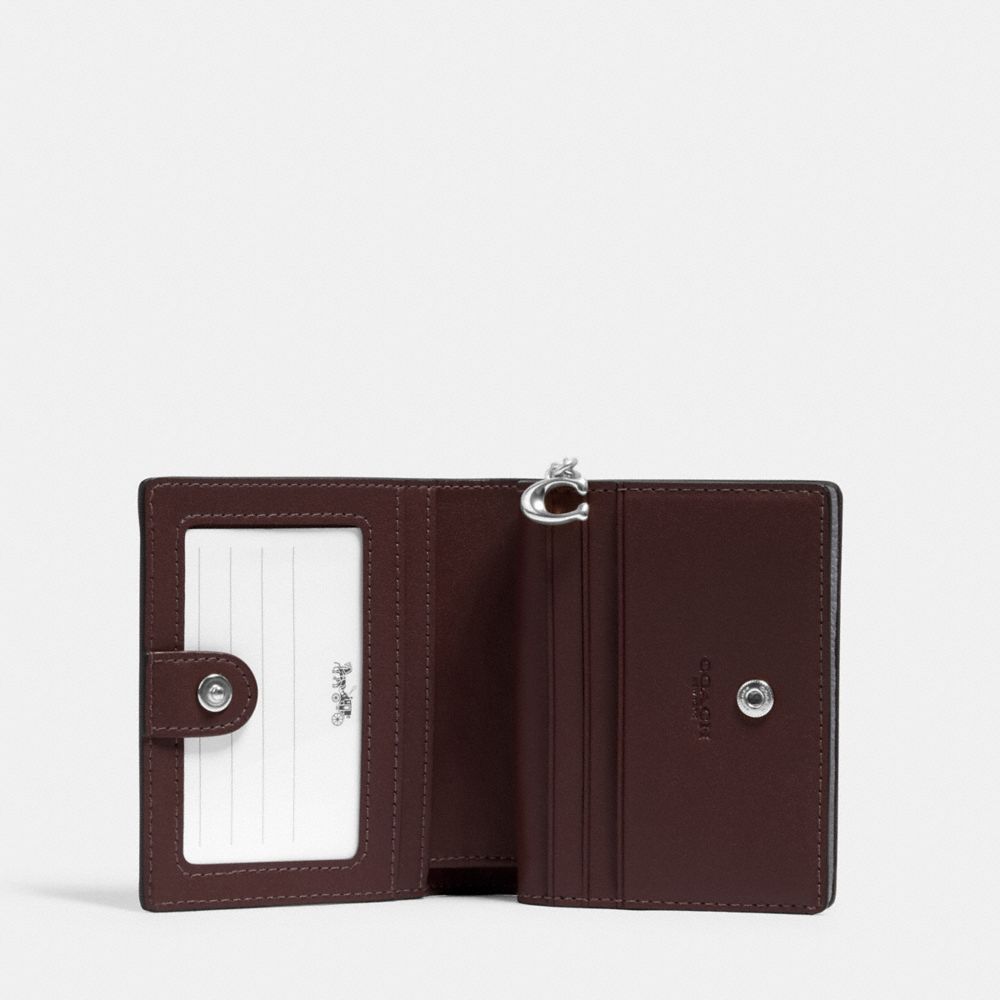 Refined pebble leather| Three credit card slots| ID window| Full-length bill compartment| Snap closure| Outside zip coin pocket| 4 1/4" (L) x 3 1/2" (H) x 1" (W)