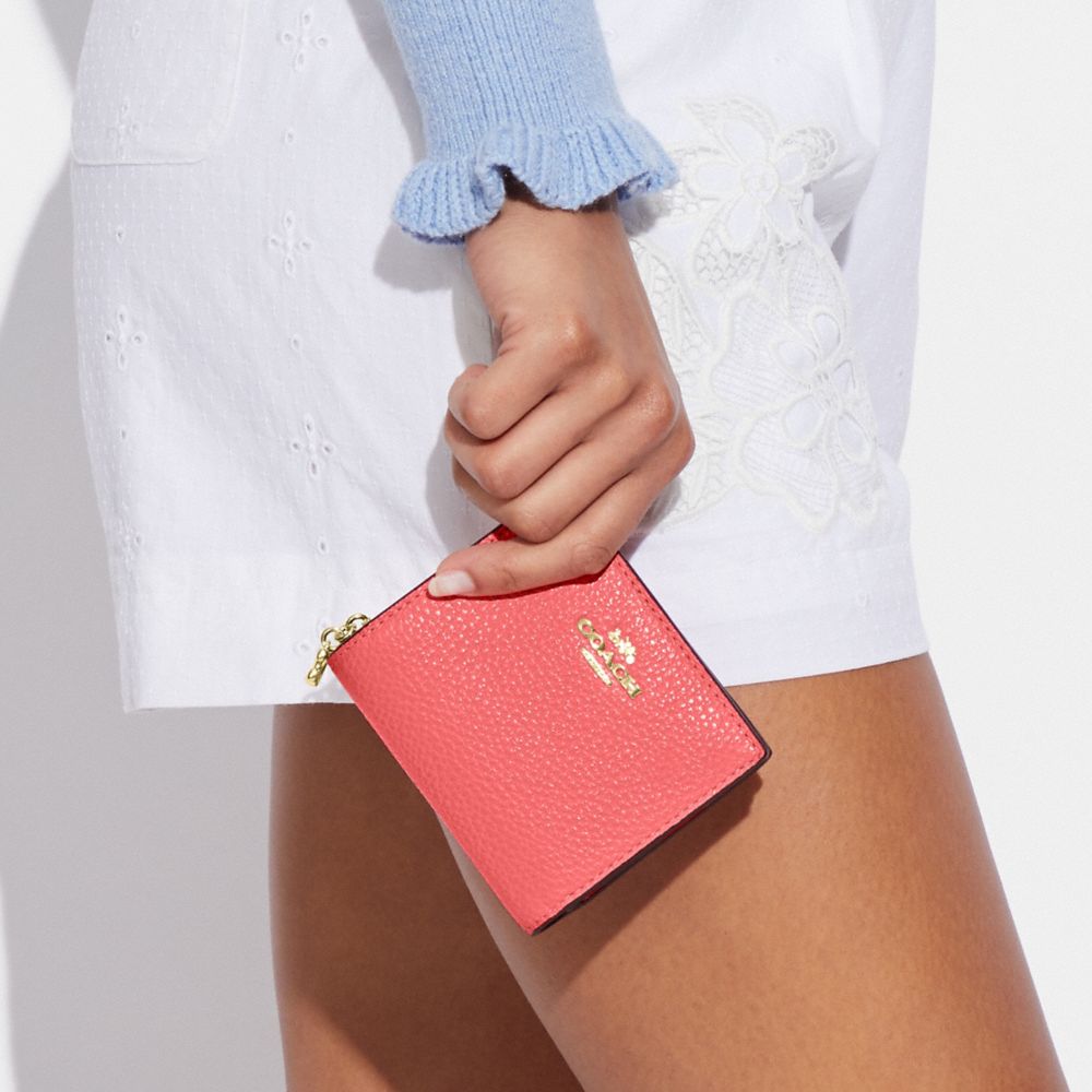 Refined pebble leather| Three credit card slots| ID window| Full-length bill compartment| Snap closure| Outside zip coin pocket| 4 1/4" (L) x 3 1/2" (H) x 1" (W)Style No. C2862