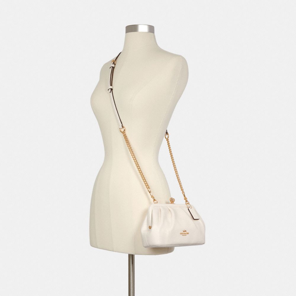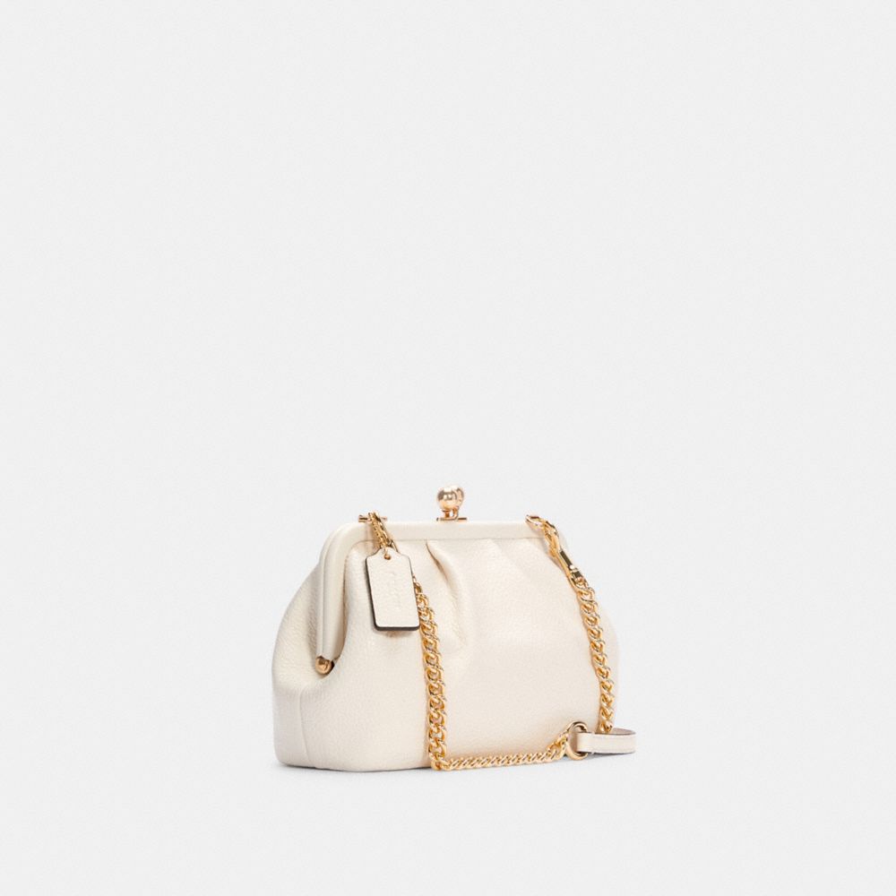 Refined pebble leather and smooth leather| Inside multifunction pocket| Kisslock closure, fabric lining| Detachable strap with 22 3/4" drop for shoulder or crossbody wear| 8 1/2" (L) x 5 1/2" (H) x 3" (W)