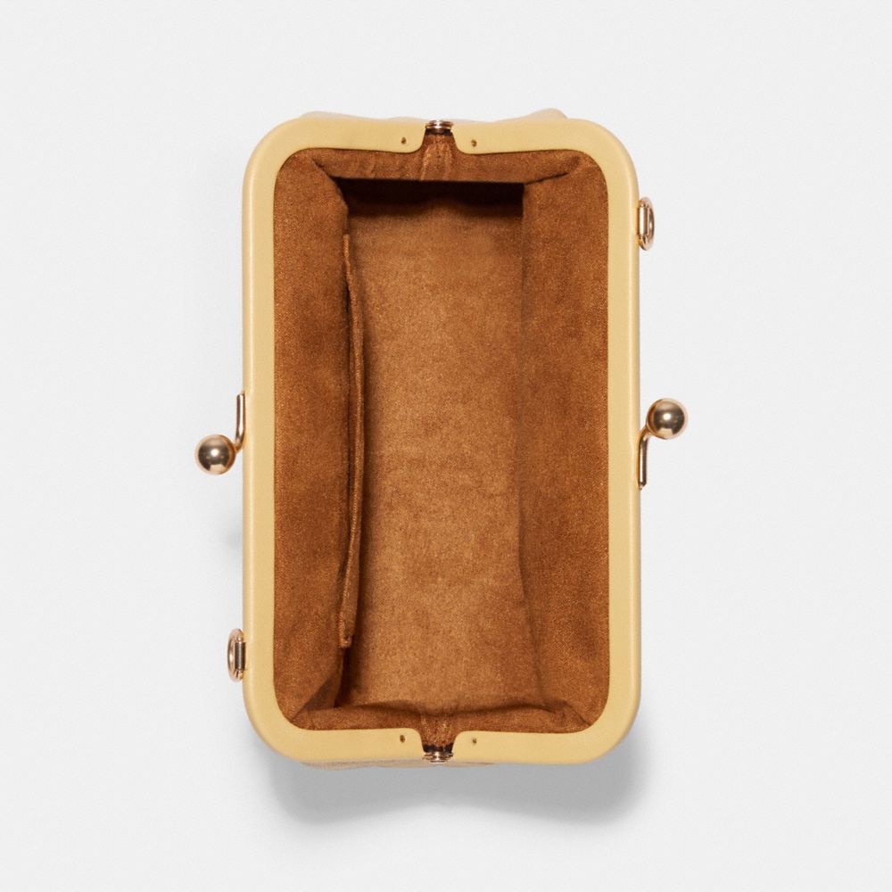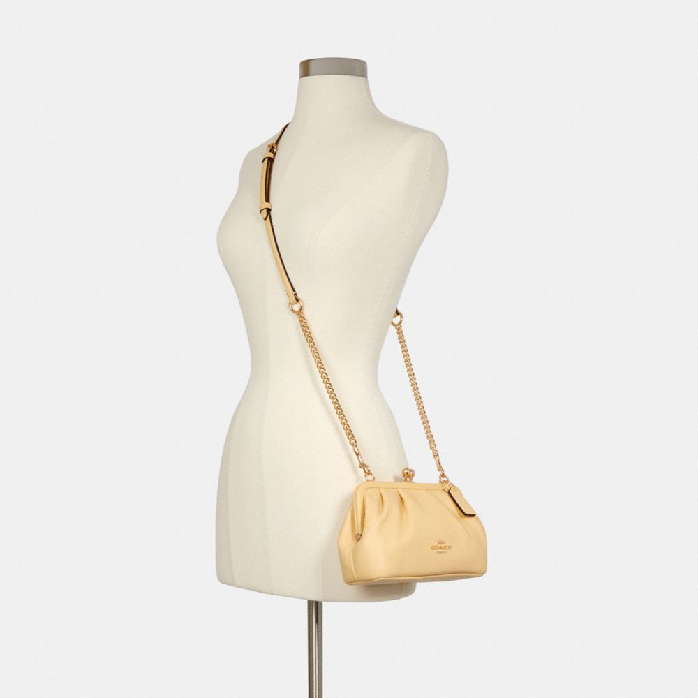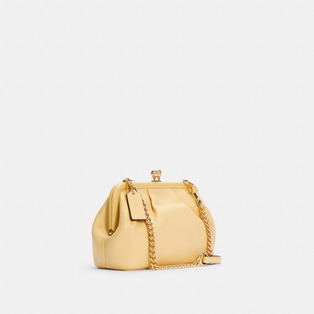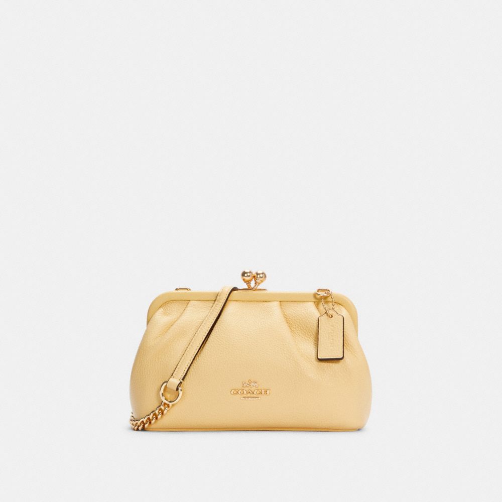 Refined pebble leather and smooth leather| Inside multifunction pocket| Kisslock closure, fabric lining| Detachable strap with 22 3/4" drop for shoulder or crossbody wear| 8 1/2" (L) x 5 1/2" (H) x 3" (W)