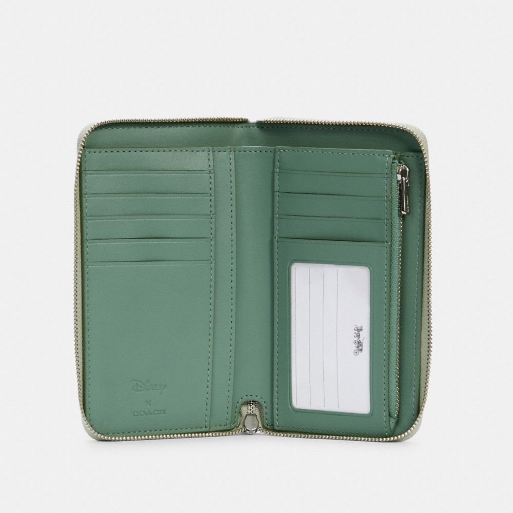 Refined pebble leather| Nine credit card slots| Bill compartments| ID window| Zip coin pocket| Zip-around closure| 6 1/2" (L) x 3 3/4" (H) x 3/4" (W)| Disney x Coach| ©Disney