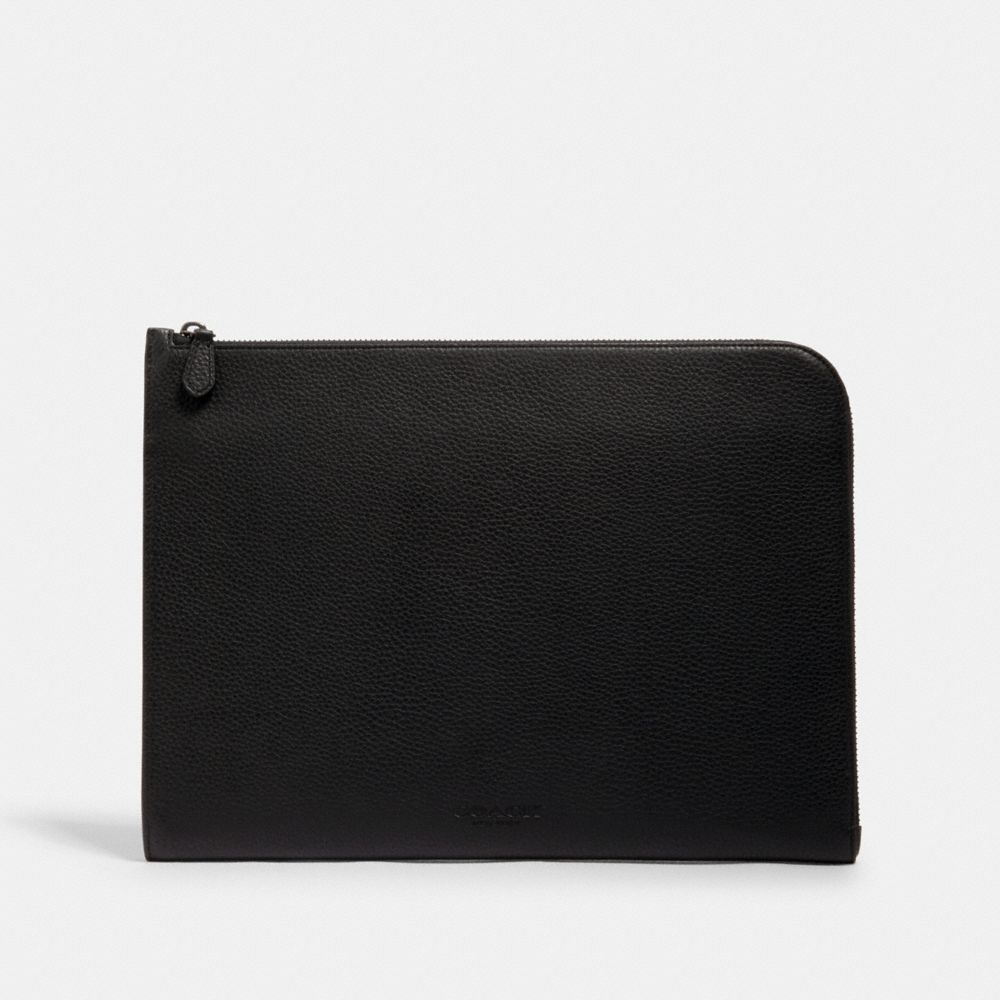 Refined pebble leather| Four credit card slots| Inside multifunction pockets| Zip closure, fabric lining| 13" (L) x 9 1/4" (H) x 3/4" (W)