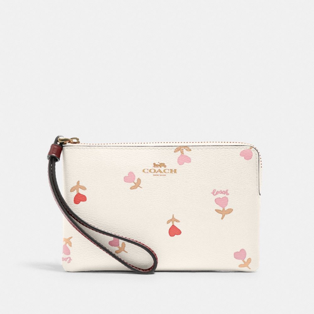 CORNER ZIP WRISTLET WITH HEART FLORAL PRINT