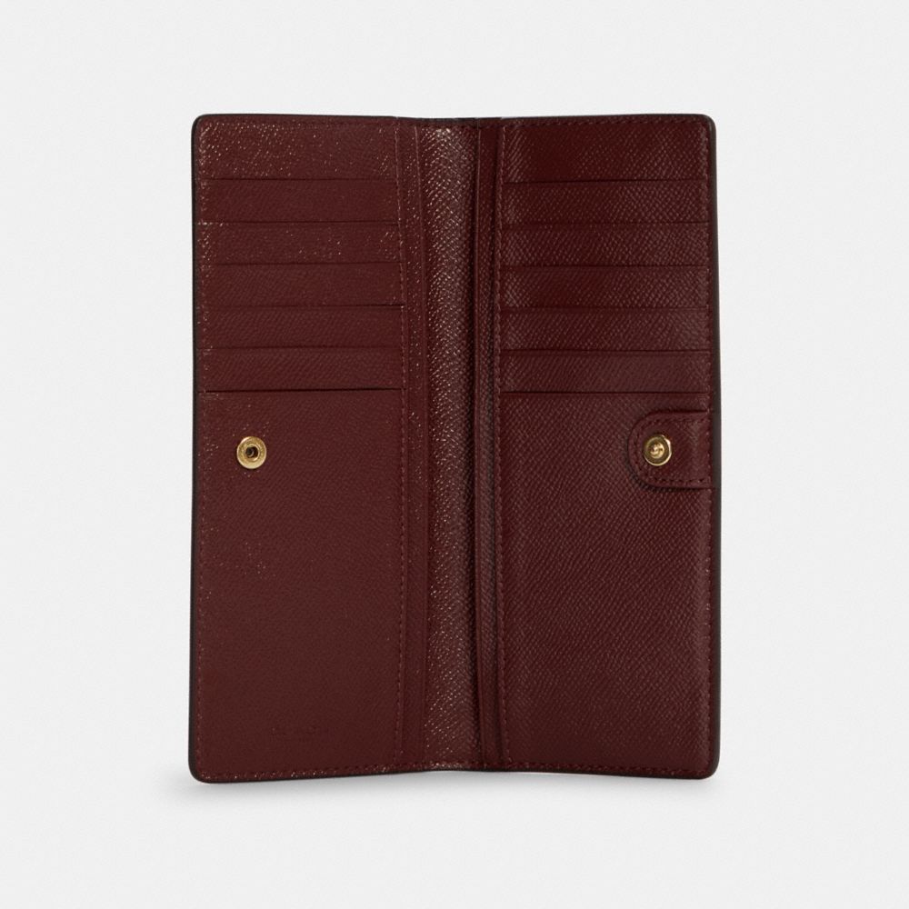 Crossgrain leather| 12 credit card slots| Full-length bill compartments| Snap closure| Outside zip pocket| 7 1/2" (L) x 3 1/2" (H) x 1/2 (W)Style No. C3440