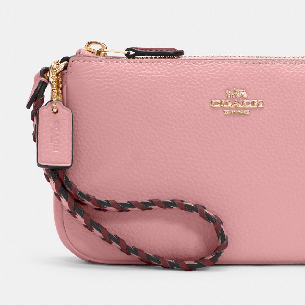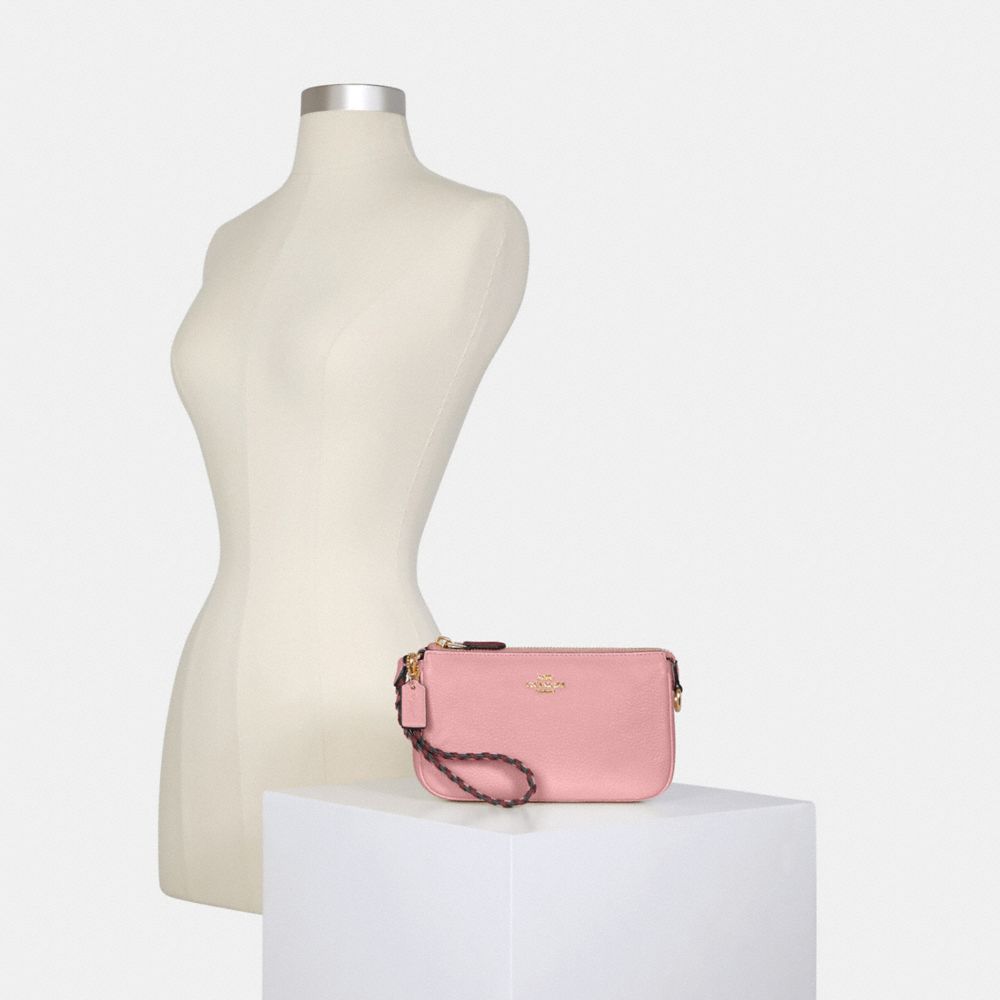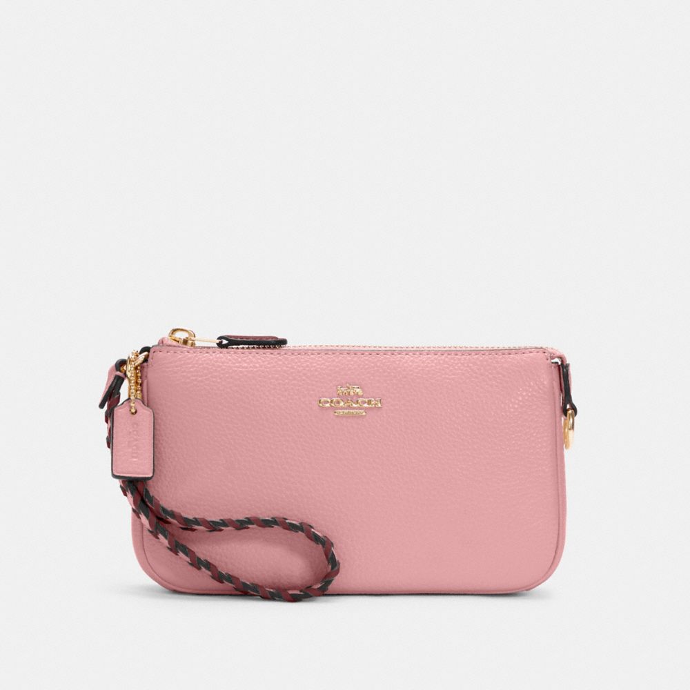 Refined pebble leather and smooth leather| Two credit card slots| Inside multifunction pocket| Zip-top closure, fabric lining| Handle with 6 1/4" drop| 7 1/2" (L) x 4 1/2" (H) x 2" (W)