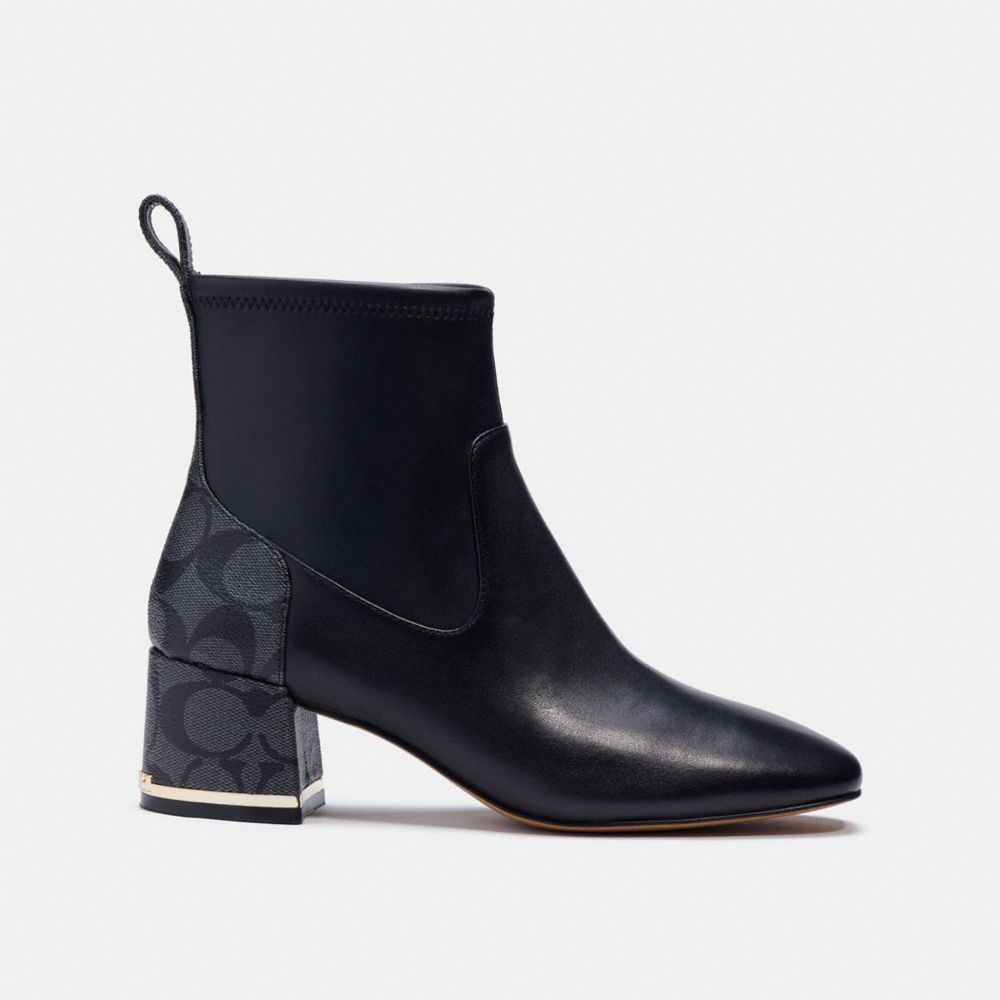 Leather, man-made leather and Signature coated canvas upper| Man-made leather lining and footbed| Rubber outsole| Zip closure| Shaft: 5" height, 9 1/4" circumference| 2" heelStyle No. C5768