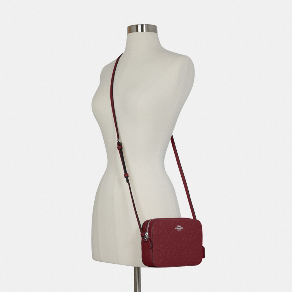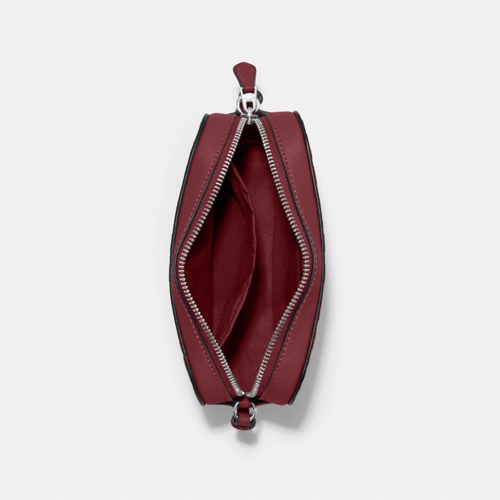 Signature smooth calf leather and smooth leather| Two credit card slots| Inside multifunction pocket| Zip closure, fabric lining| Outside open pocket| Adjustable strap with 23" drop for shoulder or crossbody wear| 7 1/4" (L) x 5 1/4" (H) x 2" (H)Style No. C5897