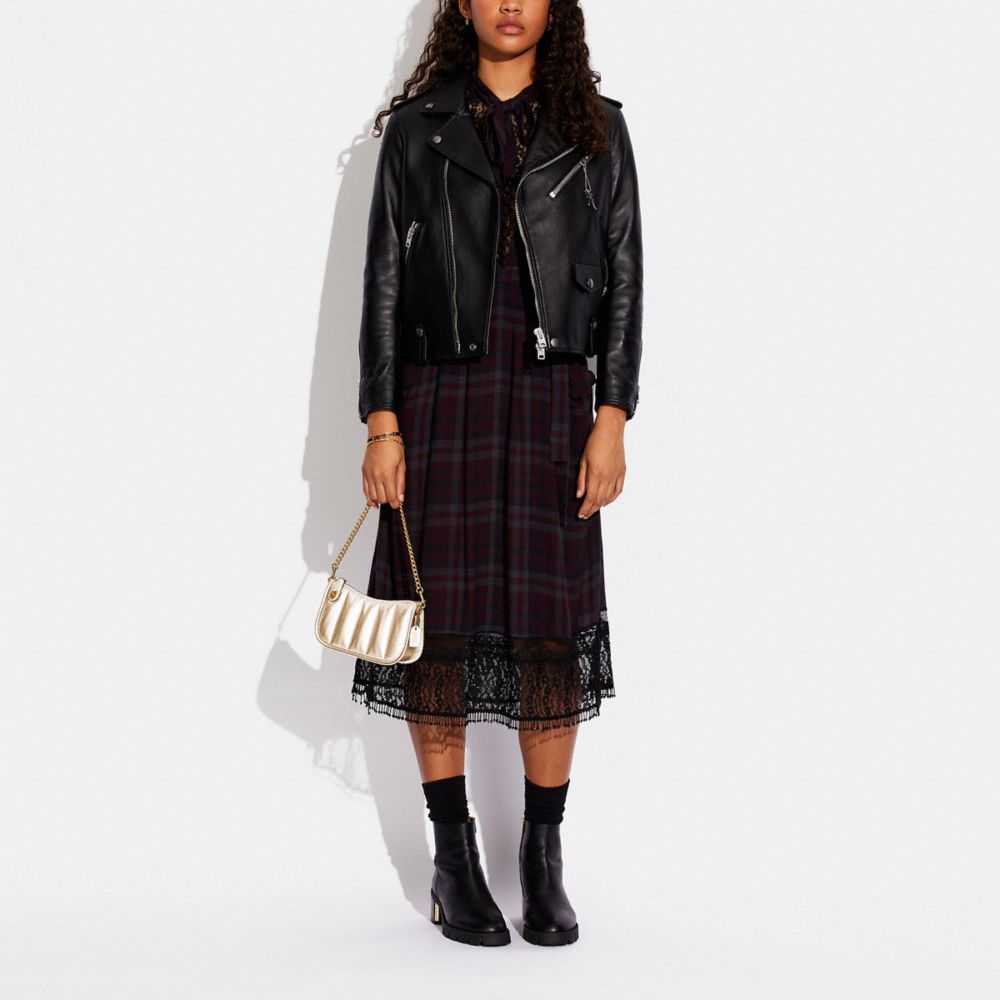 Metallic soft calf leather| Three credit card slots| Zip-top closure, fabric lining| Detachable handle with 6 3/4" drop| 7 3/4" (L) x 4 3/4" (H) x 2 1/2" (W)| The Coach OriginalsStyle No. C6746