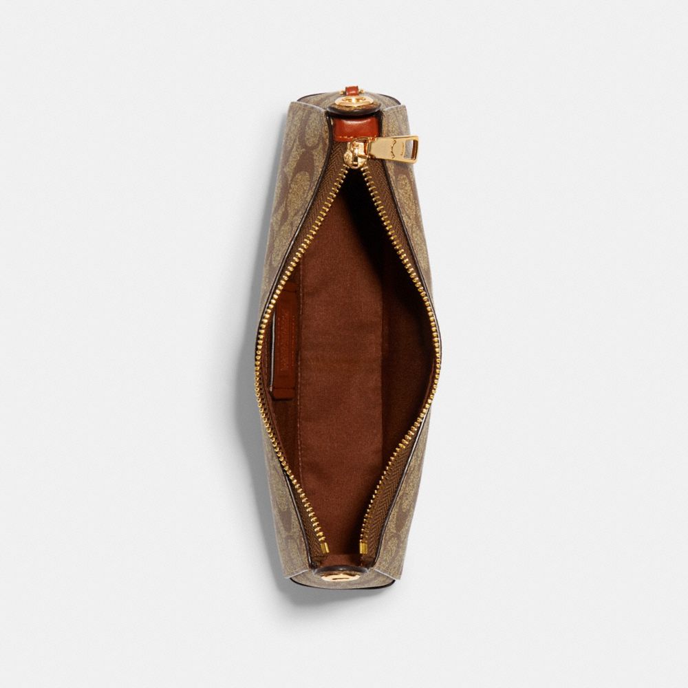 Signature coated canvas and smooth leather| Inside multifunction pocket| Zip-top closure, fabric lining| Detachable strap with 22 1/2" drop for shoulder or crossbody wear| 9 1/2" (L) x 5" (H) x 2 1/2" (W)Style No. C6817