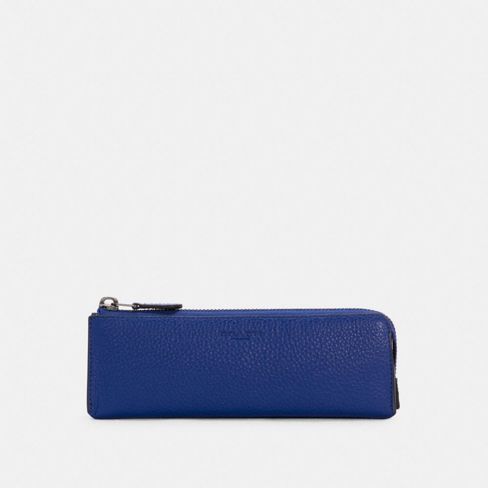 Refined pebble leather| Inside multifunction pocket| Zip closure, fabric lining| 7 3/4" (L) x 2 1/2" (H) x 1 1/4" (W)Style No. C6989