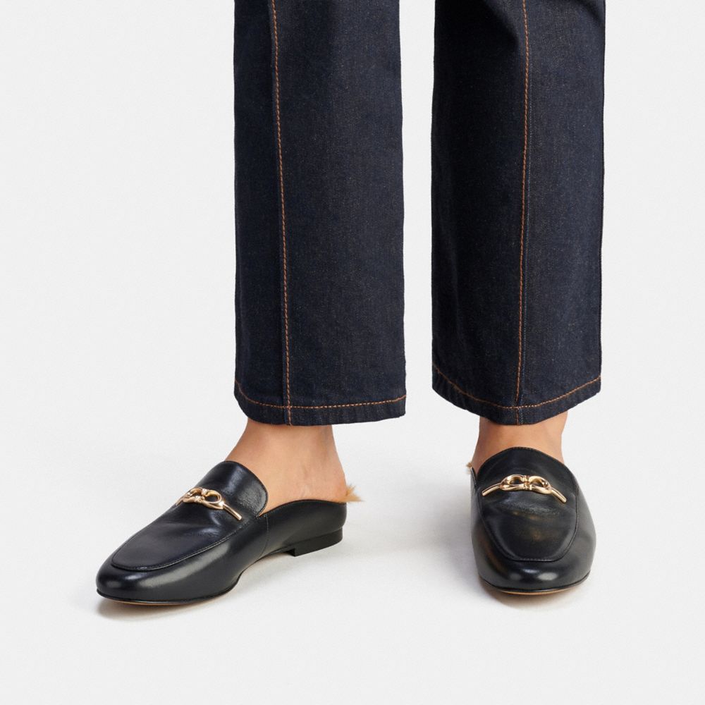 Leather upper| Man-made leather lining; faux fur footbed| Rubber outsole| Slip on| 1/4" heelStyle No. C7026