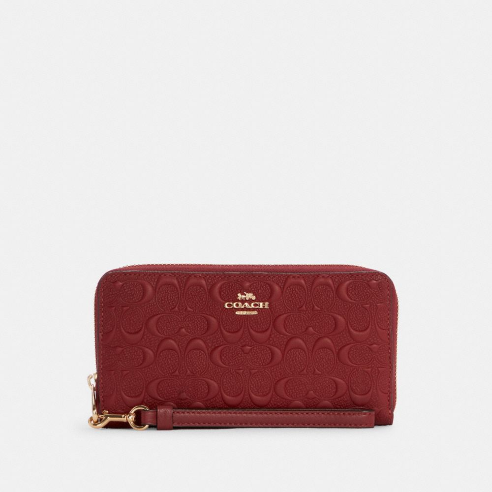 Signature smooth calf leather and smooth leather| Twelve credit card slots| Full-length bill compartments| Inside zip coin pocket| Zip-around closure| Detachable wrist strap| 7 1/2" (L) x 4" (H) x 1" (W)Style No. C7360