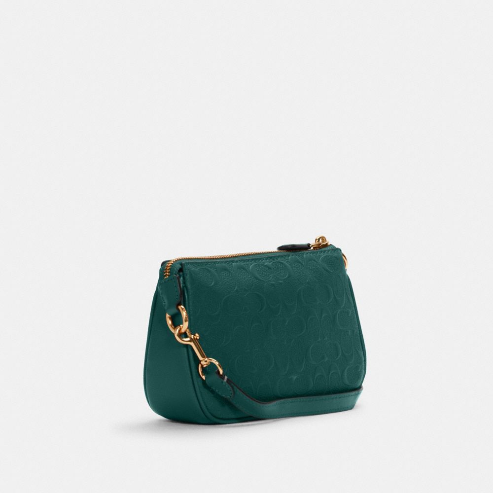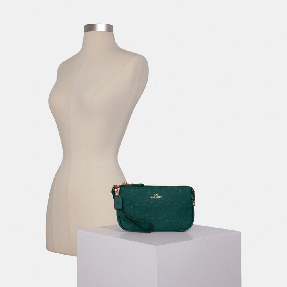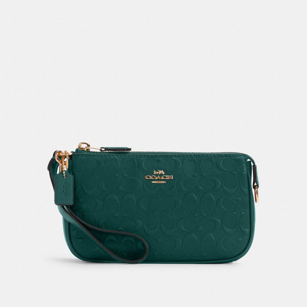 Signature smooth calf leather and smooth leather| Two credit card slots| Inside multifunction pocket| Zip-top closure, fabric lining| Handle with 6 1/4" drop| 7 1/2" (L) x 4 1/2" (H) x 2" (W)Style No. C7362