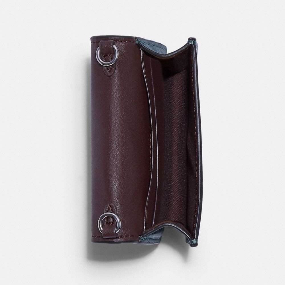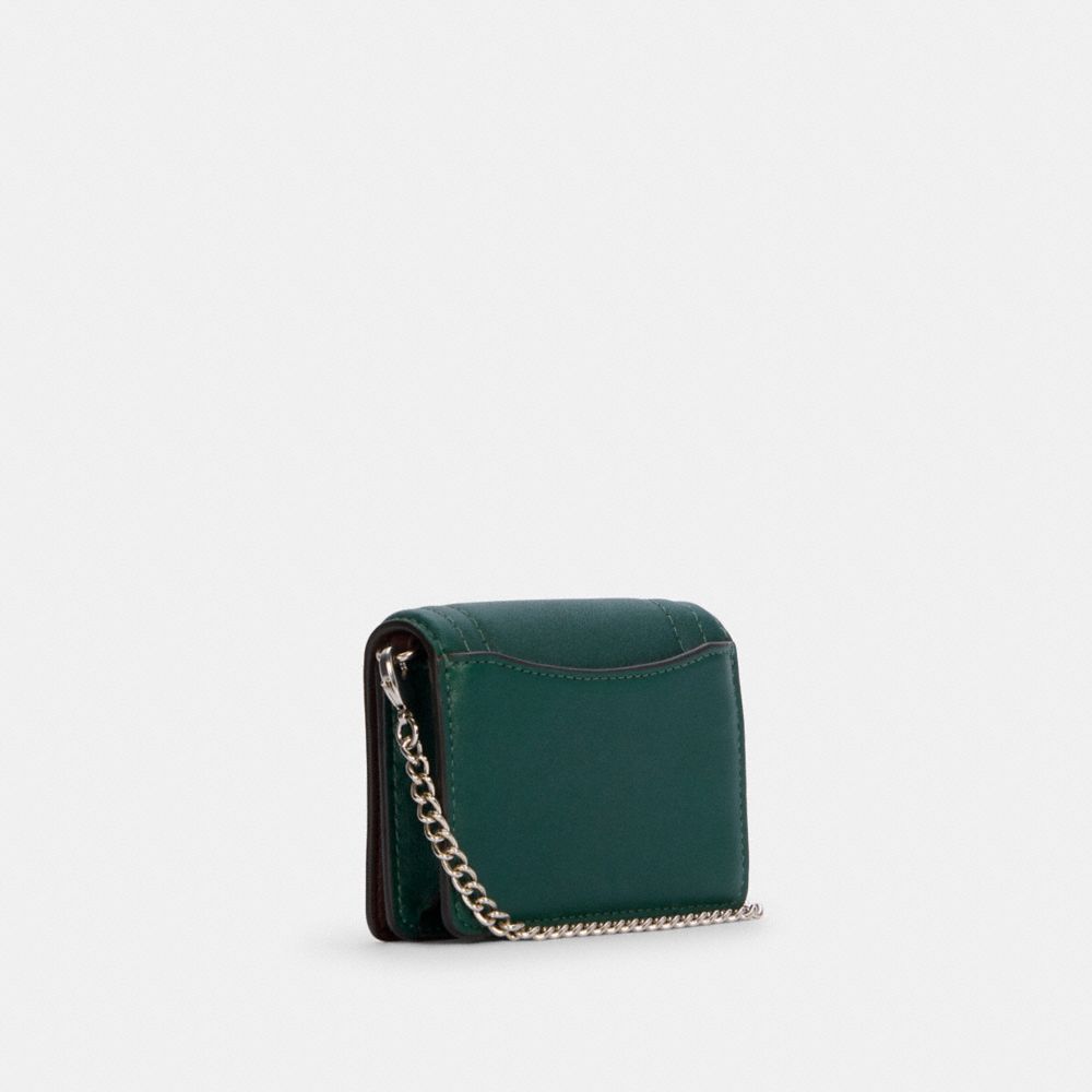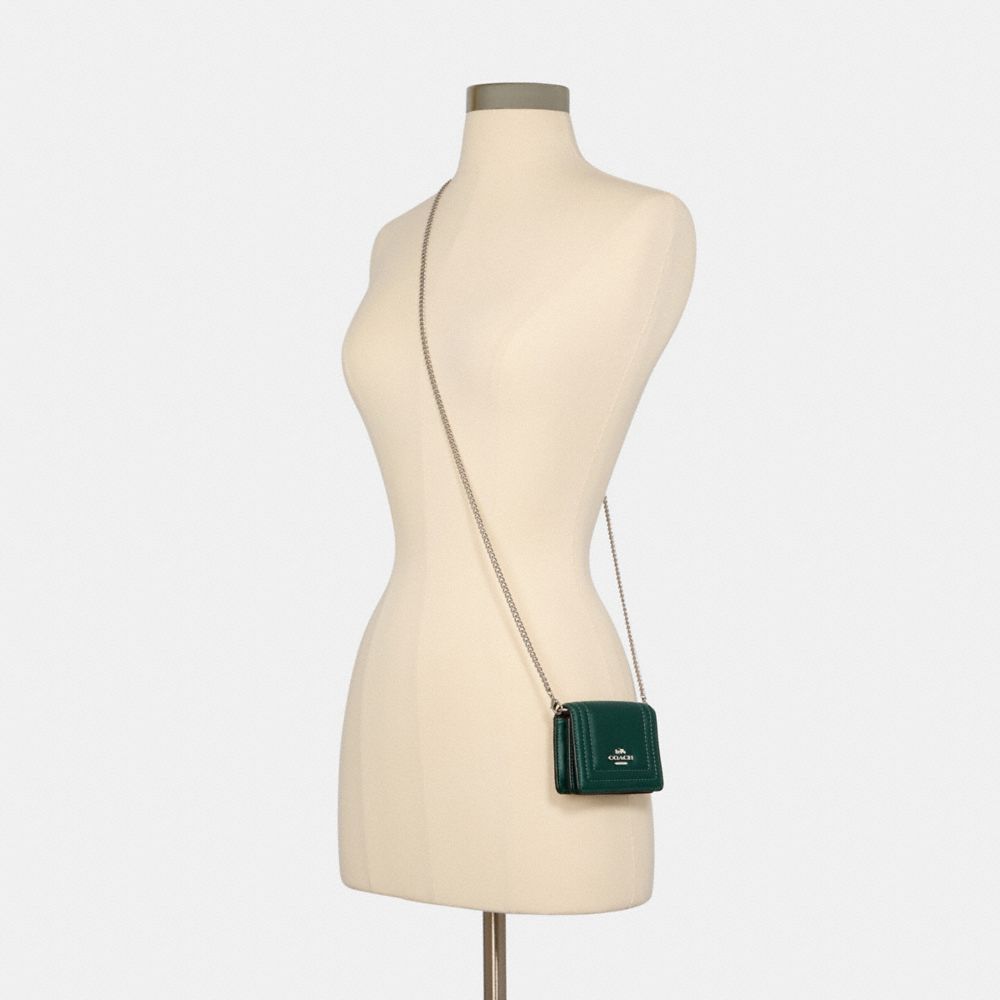 Pearl leather| Two credit card slots| Snap closure, fabric lining| Outside open pocket| Detachable chain strap with 23 1/4" drop for shoulder or crossbody wear| 4" (L) x 3" (H) x 1" (W)Style No. C7364