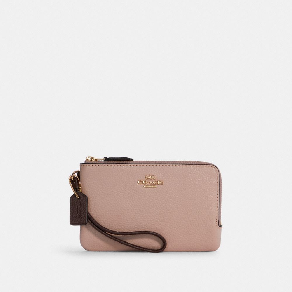 Refined pebble leather| Two credit card slots| Double zip closure, fabric lining| Wrist strap attached| 6 1/2" (L) x 3 3/4" (H) x 1 3/4" (W)Style No. C7679