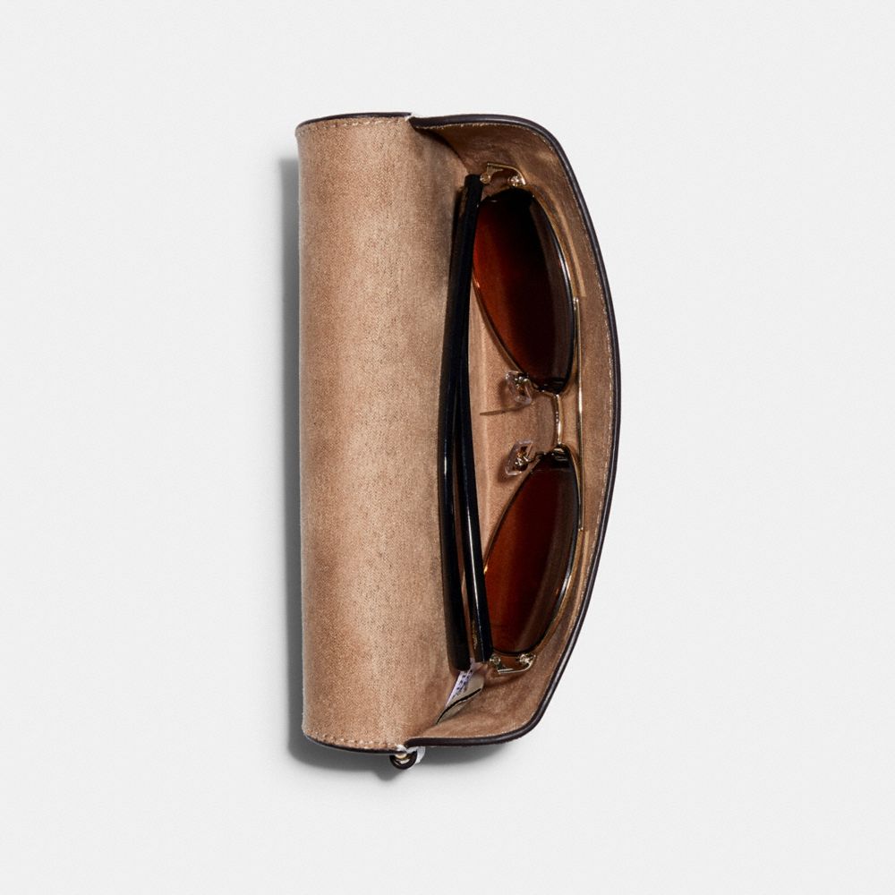 Signature coated canvas and smooth leather| Turnlock closure, fabric lining| Attached dogleash clip| 6 3/4" (L) x 3" (H) x 1 1/2" (W)Style No. C8222