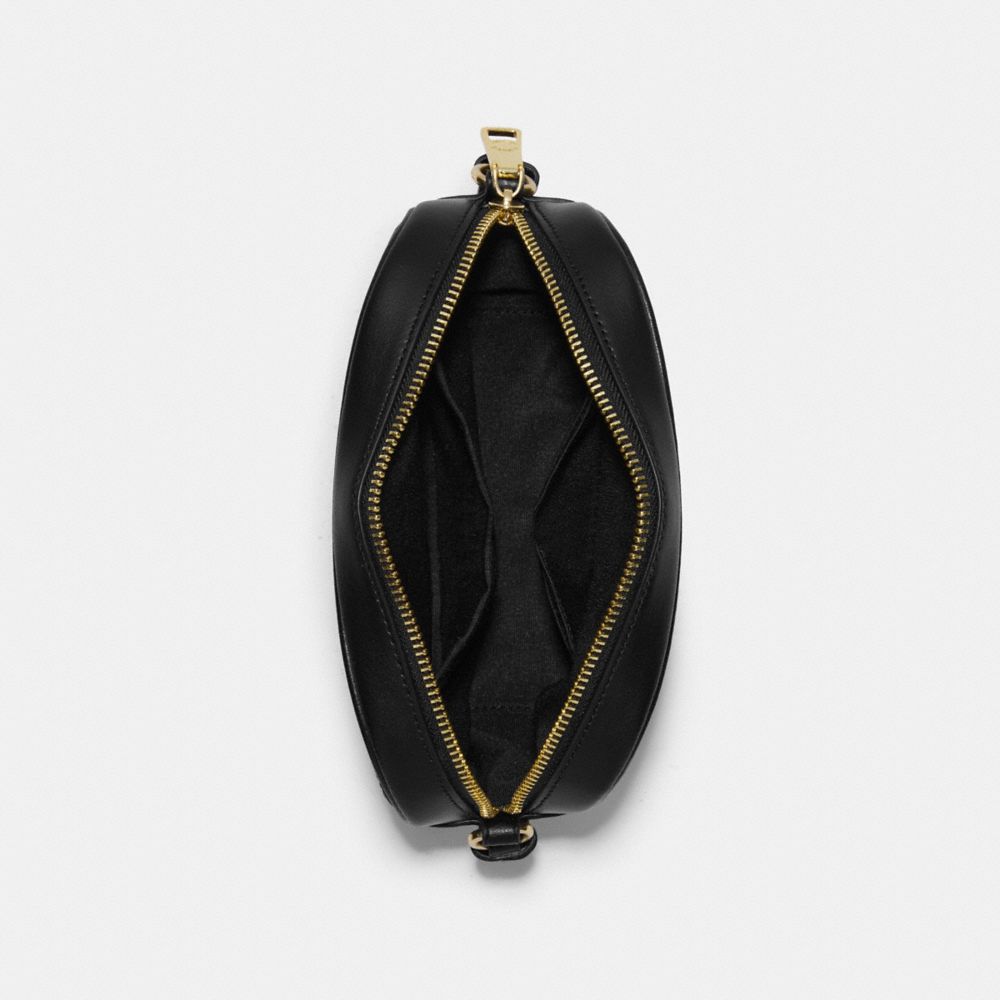 Signature coated canvas and smooth leather| Two credit card slots| Inside multifunction pocket| Zip closure, fabric lining| Outside open pocket| Adjustable strap with 22 3/4" drop for shoulder or crossbody wear| 7 1/2" (L) x 5 1/4" (H) x 2 1/4" (W)Style No. C9926