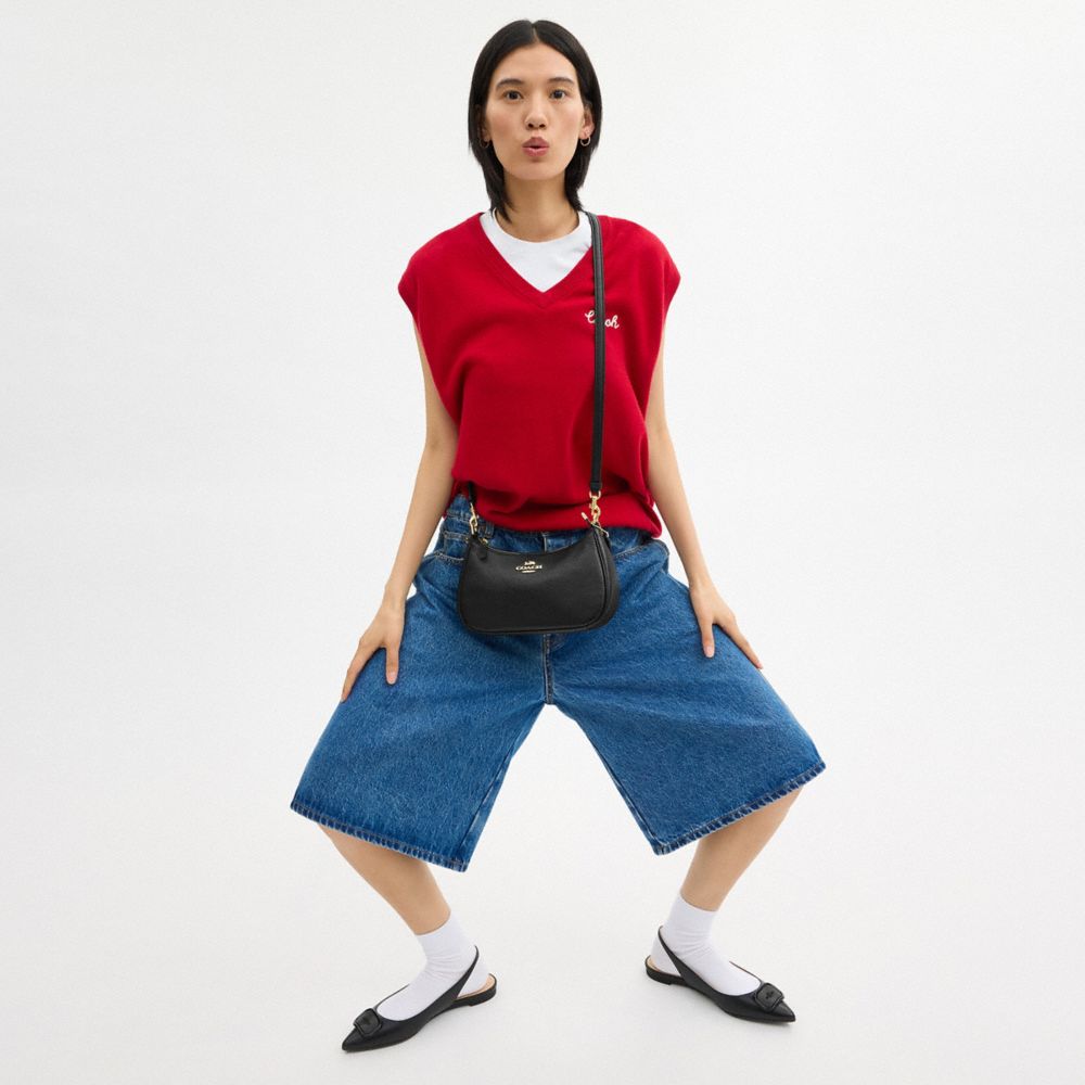 Refined pebble leather| Two credit card slots| Inside multifunction pocket| Zip-top closure, fabric lining| Detachable handle with 8 1/4" drop| Detachable strap with 22 3/4" drop for shoulder or crossbody wear| 9 1/2" (L) x 6" (H) x 3" (W)Style No. CA209