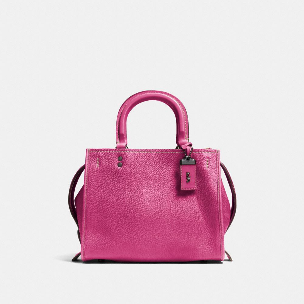 Glovetanned pebble leather| Inside zip and snap pockets| Zip closure, fabric and suede lining| Two open compartments| Handles with 3 1/2" drop| Detachable straps with 10 1/2" drop for shoulder wear| Shoulder straps can be linked together for crossbody wear| 9 3/4" (L) x 7 1/2" (H) x 5 1/2" (W)