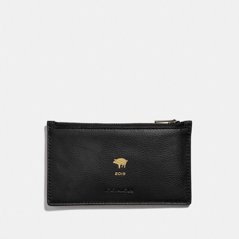 | Smooth calf leather| Five credit card slots| Zip pocket| 5" (L) x 3" (H)