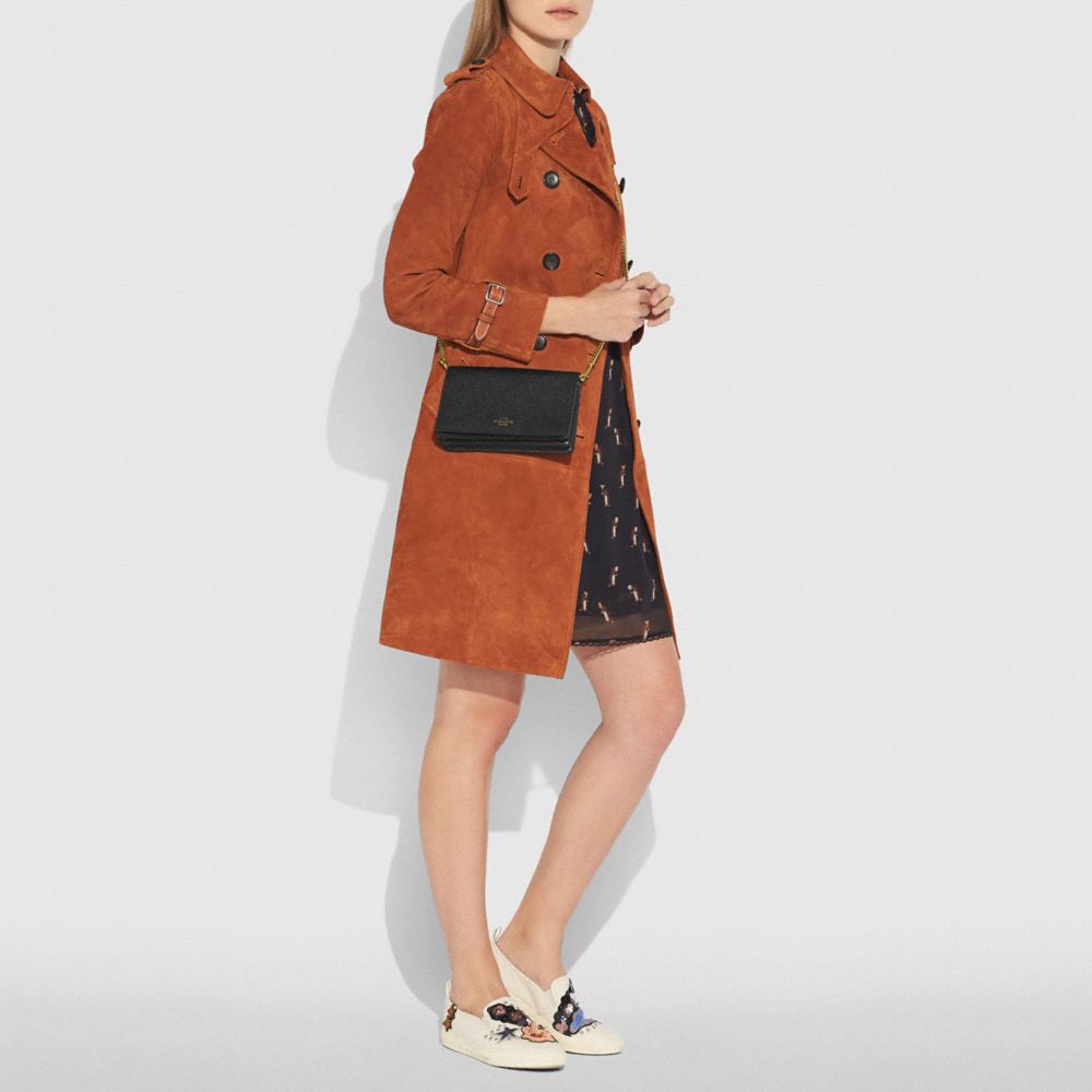 Grain leather| Eight credit card slots| Full-length bill compartment| Inside zip pocket| Snap closure| Outside slip pocket| Detachable chain strap with 23" drop for shoulder or crossbody wear| Instantly change the look of your bag with an interchangeable strap.| 8" (L) x 4 3/4" (H) x 2 1/4" (W)