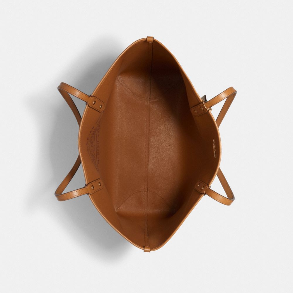 Printed coated canvas and smooth leather| Reversible| Handles with 9 1/2" drop| 13" (L) x 11 1/2" (H) x 6 1/4" (W)