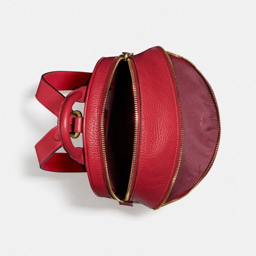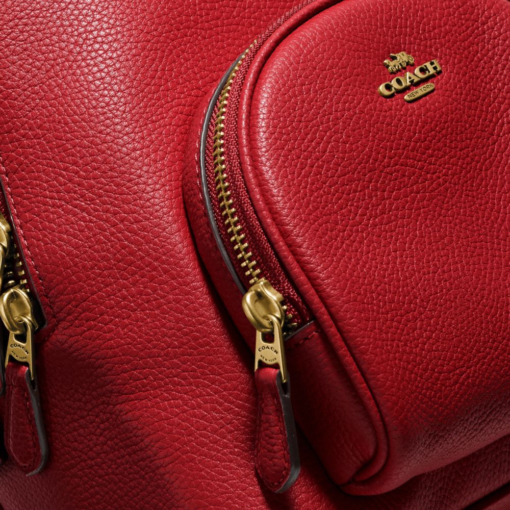 Polished pebble leather| Inside zip and multifunction pockets| Zip closure, fabric lining| Top handle with 1 3/4" drop| Outside zip pocket| Adjustable shoulder straps| 9" (L) x 10 1/2" (H) x 4" (W)