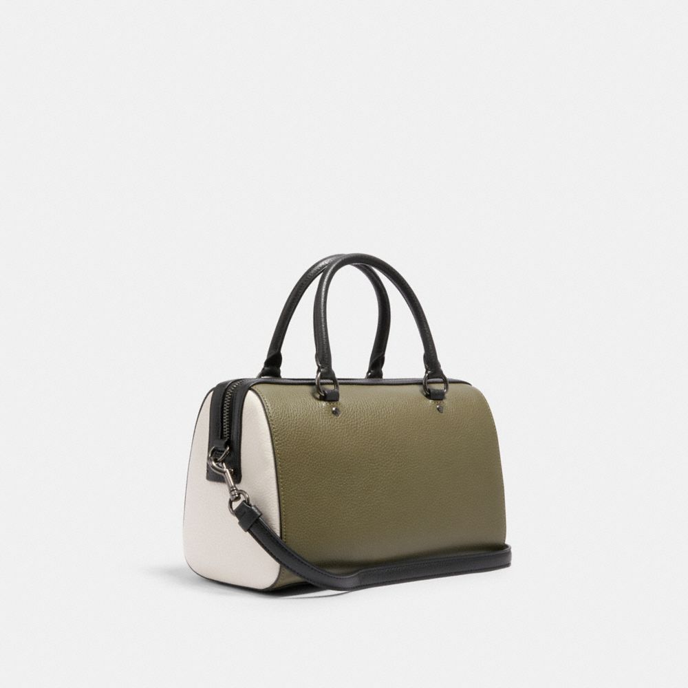 Refined pebble leather| Inside zip and multifunction pockets| Zip closure, fabric lining| Handles with 4 1/4" drop| Outside zip pocket| Detachable strap with 23" drop for shoulder or crossbody wear| 10 1/2" (L) x 6 1/4" (H) x 5 1/2" (W)