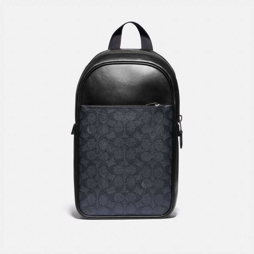 Signature coated canvas and refined calf leather| Inside multifunction pocket| Zip closure, fabric lining| Top handle with 2 1/4" drop| Outside zip and snap pockets| Adjustable shoulder strap for crossbody wear| 7" (L) x 13" (H) x 2 3/4" (W)Style No. 3102
