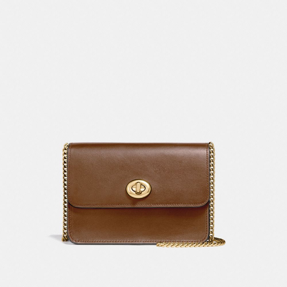 Refined calf leather with signature coated canvas details| Inside zip pocket| Turnlock closure, fabric lining| Outside slip pocket| Strap with 22" drop for shoulder or crossbody wear| 7" (L) x 5" (H) x 3" (W)