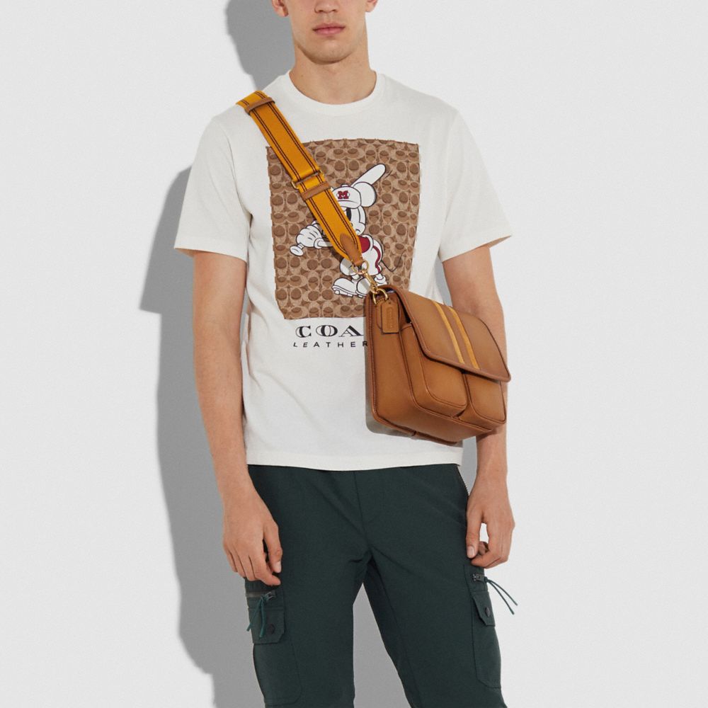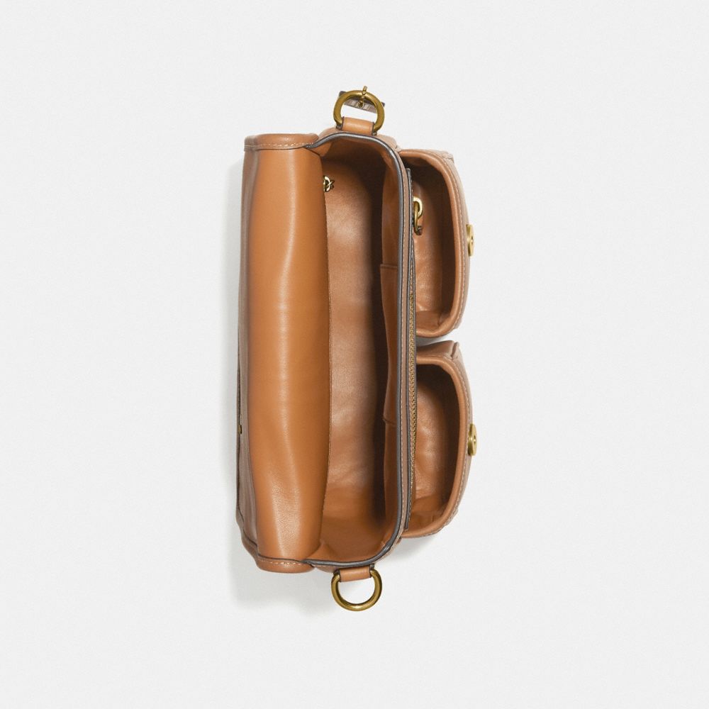 Glovetanned leather and suede| One credit card slot| Inside zip and multifunction pockets| Snap closure, leather lining| Outside slip pocket| Detachable strap with 25" drop for shoulder or crossbody wear| 9 1/2" (L) x 8 1/2" (H) x 4 1/4" (W)| The Coach OriginalsStyle No. 3681