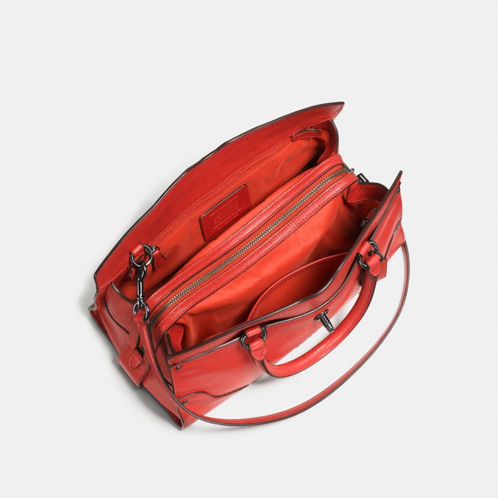 Grain leather| Inside zip, cell phone and multifunction pockets| Center zip compartment| Turnlock closure, fabric lining| Handles with 4" drop | Outside slip pocket with turnlock closure| Detachable strap with 21 3/4" drop for shoulder or crossbody wear| Compatible with Coach interchangeable straps | 11 3/4" (L) x 8 3/4" (H) x 6" (W)