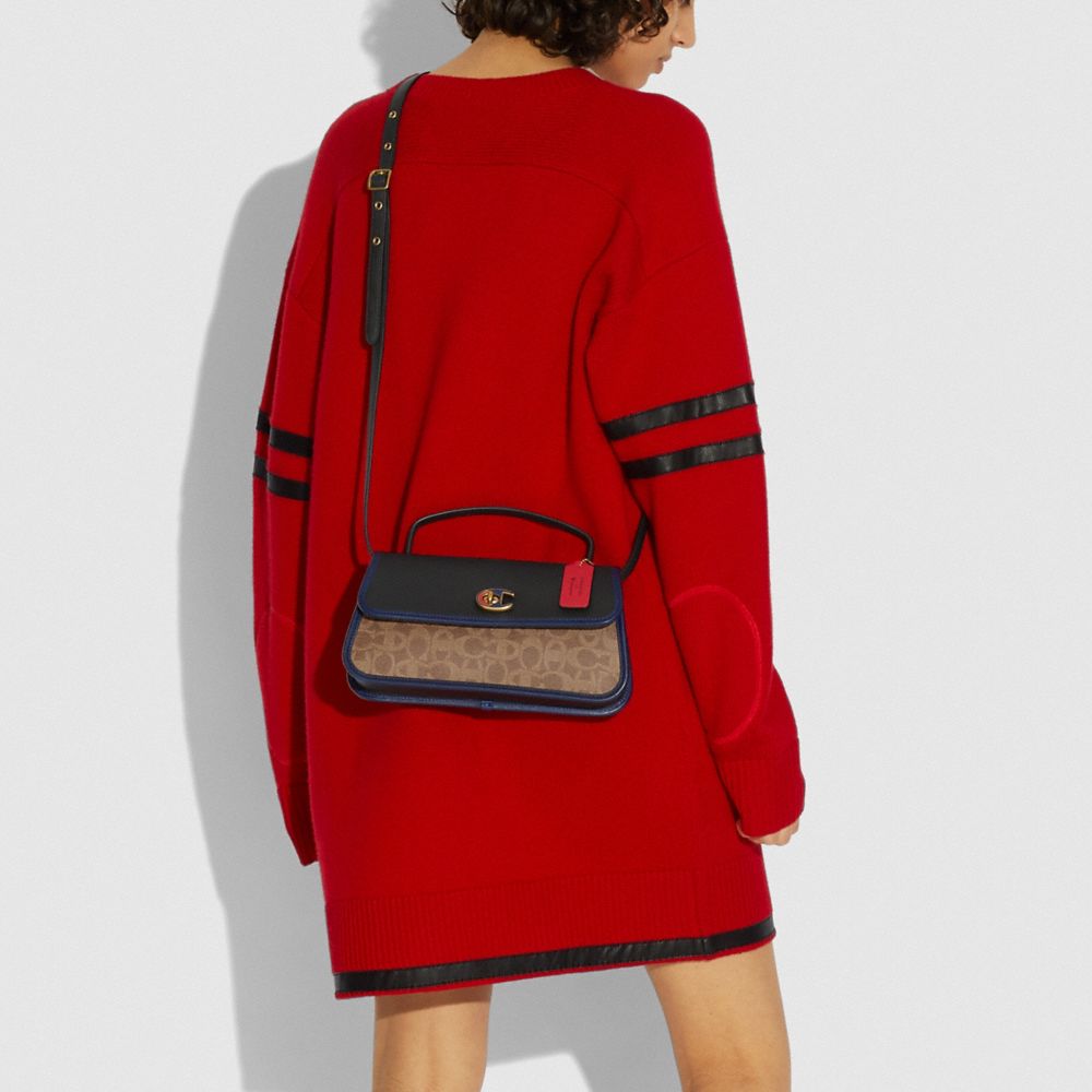 Signature coated canvas and glovetanned leather| Card slot| Inside zip pocket| Turnlock closure, leather lining| Top handle with 1 1/2" drop| Outside slip pocket| Adjustable strap with 21 1/2" drop for shoulder or crossbody wear| 10 1/2" (L) x 5 1/2" (H) x 2" (W)| Coach x Champion®| Champion® is a registered trademark of HBI Branded Apparel Enterprises, LLCStyle No. 4547