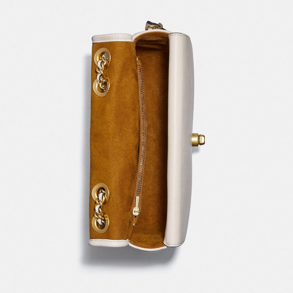 Nappa leather and smooth leather| Zip and multifunction pockets| Turnlock closure, fabric lining| Outside open pocket| Handles convert to shoulder strap with 21 1/2" drop| 9 1/4" (L) x 6 3/4" (H) x 3 1/4" (W)Style No. 4684