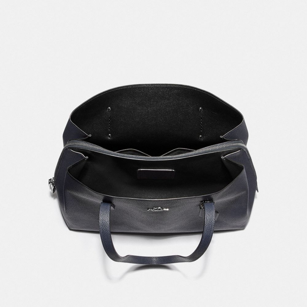 Polished pebble leather| Inside cell phone and multifunction pockets| Center zip compartment| Handles with 8 3/4" drop| Fits a 14" laptop| 15 3/4" (L) x 11 3/4" (H) x 6" (W)