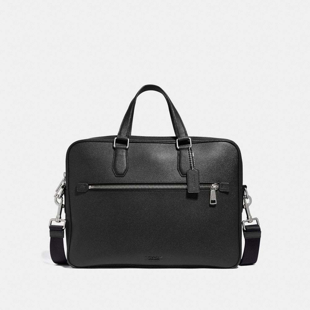 Crossgrain leather| Inside zip, cell phone and multifunction pockets| Inside sleeve with secure tab for a 13" laptop| Zip closure, fabric lining| Handles with 4 1/4" drop | Outside zip and snap pockets| Detachable strap with 25" drop for shoulder or crossbody wear| 15 3/4" (L) x 11 3/4" (H) x 2 1/4" (W)Style No. 55575