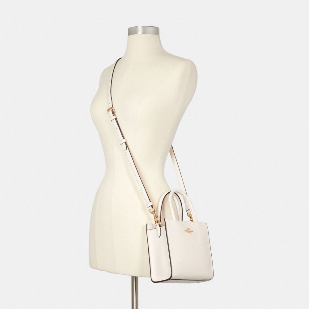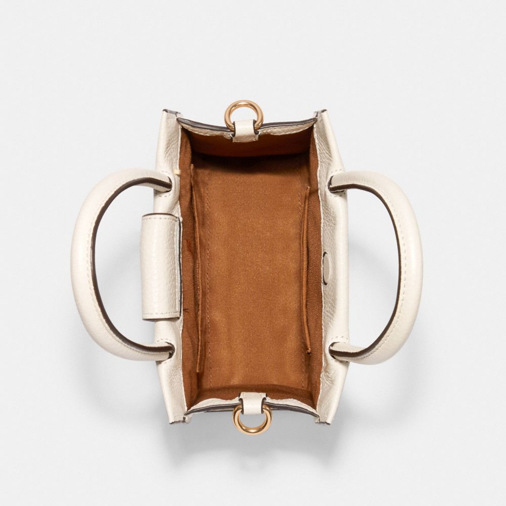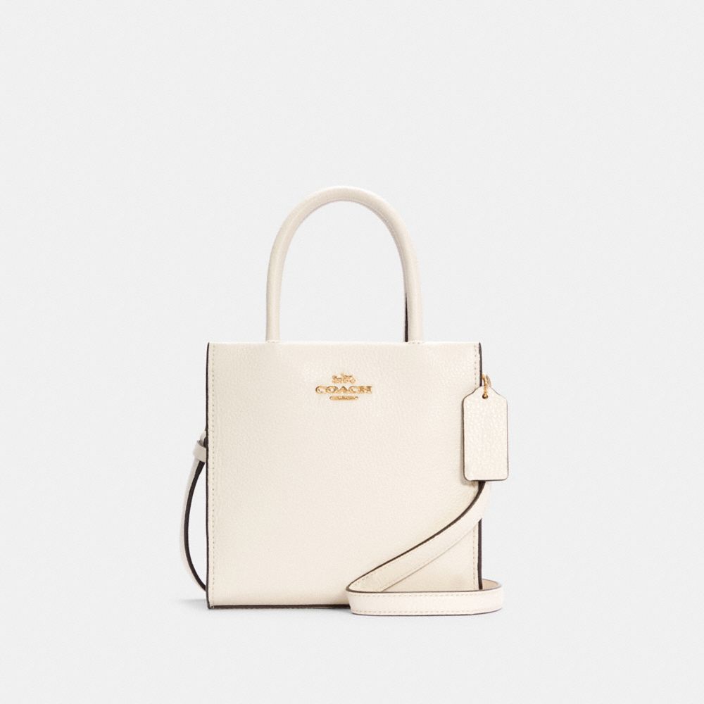 Refined pebble leather| Two credit card slots| Inside multifunction pocket| Magnetic snap closure, fabric lining| Handles with 3 3/4" drop| Detachable strap with 22 3/4" drop for shoulder or crossbody wear| 6 3/4" (L) x 6 1/2" (H) x 3 1/4" (W)