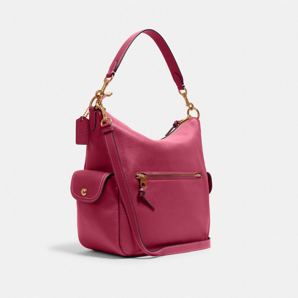 Refined pebble leather| Inside zip pocket| Zip-top closure, fabric lining| Detachable handle with 7" drop| Outside zip and snap pockets| Detachable strap with 20 3/4" drop for shoulder or crossbody wear| 10 3/4" (L) x 11 3/4" (H) x 5 1/4" (W)