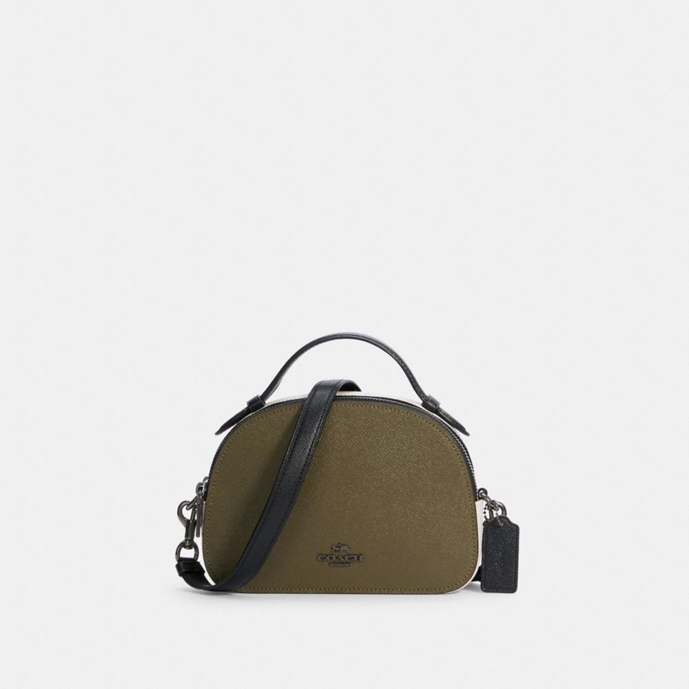 Crossgrain leather| Inside multifunction pocket| Double zip closure, fabric lining| Handle with 2" drop| Outside slip pocket| Detachable strap with 21" drop for shoulder or crossbody wear| 8 1/4" (L) x 5 3/4" (H) x 2 1/2" (W)