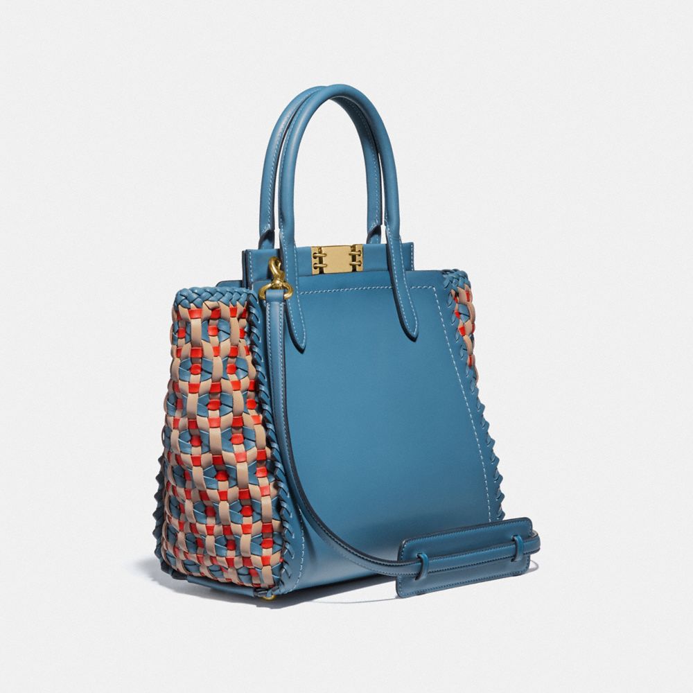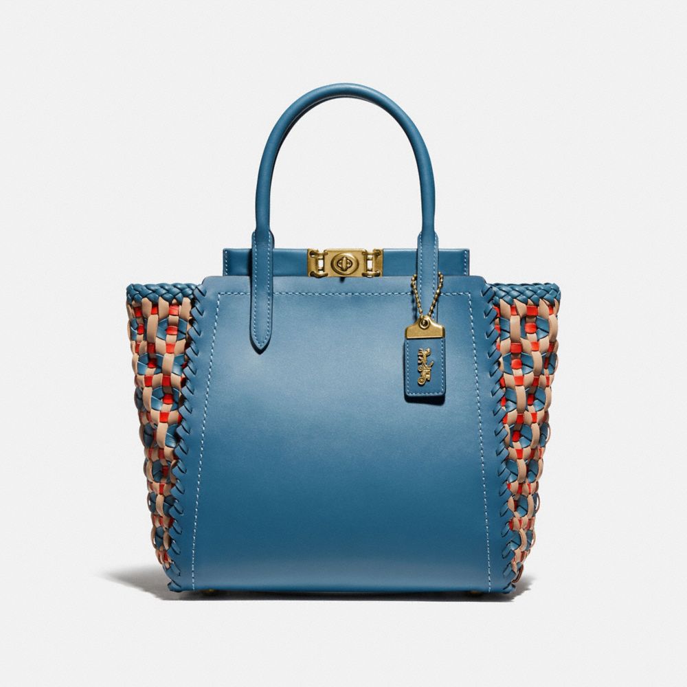 Glovetanned leather and smooth leather| Inside zip pocket| Magnetic bar closure, fabric lining| Handles with 5" drop| Detachable strap with 21 1/2" drop for shoulder or crossbody wear| Instantly change the look of your bag with an interchangeable strap.| Four protective feet at base| 10 1/4" (L) x 11 1/2" (H) x 6 1/4" (W)| Also available in other sizes