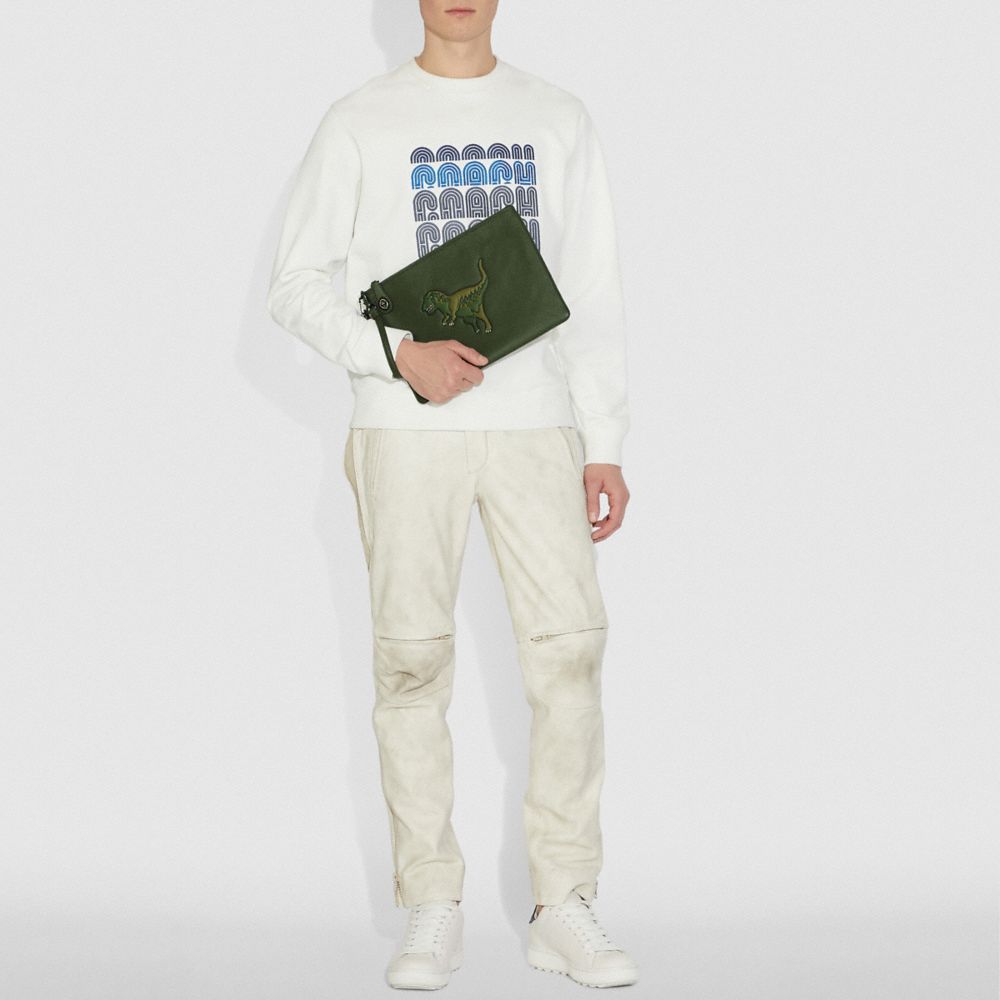 Crossgrain leather| Inside zip pocket| Zip-top closure, fabric lining| Detachable wrist strap| 11 3/4" (L) x 8 3/4" (H)| Fits iPad up to 9.7" iPad Pro