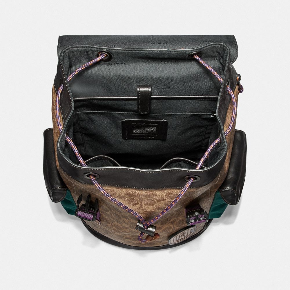 Signature coated canvas, CORDURA® fabric and refined calf leather| Inside zip, cell phone and multifunction pockets| Inside sleeve with secure tab for a 15" laptop| Drawstring and speedclip closures, fabric lining| Top handle with 3 1/2" drop| Outside snap pockets| Outside zip access to interior| Adjustable shoulder straps | 10 3/4" (L) x 15 3/4" (H) x 6" (W)| CORDURA® is a trademark of INVISTA for durable fabricStyle No. 69291