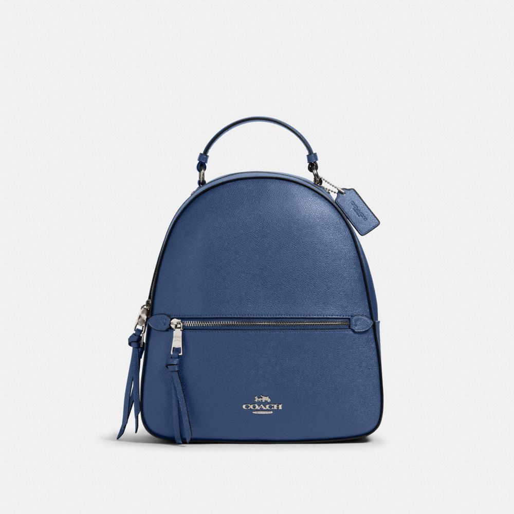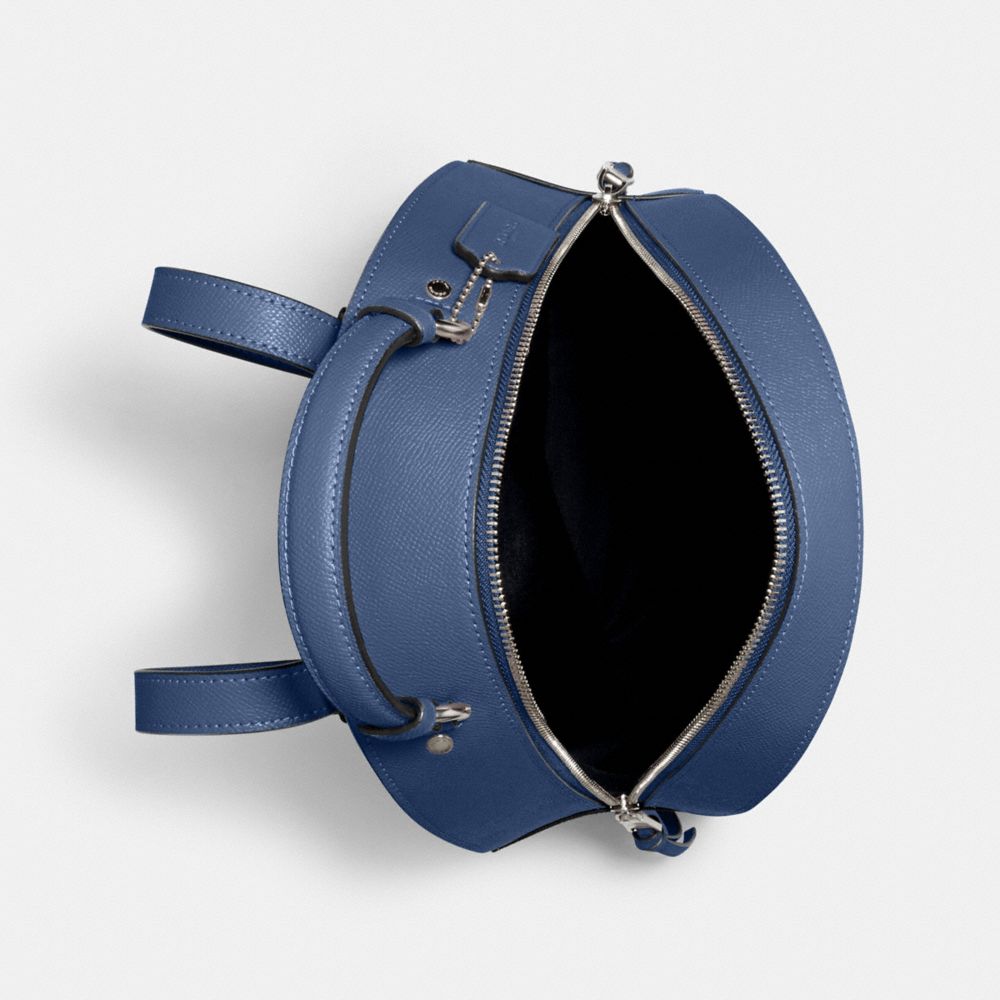 Crossgrain leather| Inside zip pocket| Zip closure, fabric lining| Top handle with 2" drop| Outside zip pocket| Adjustable shoulder straps| 10 1/2" (L) x 12 1/4" (H) x 3 3/4" (W)