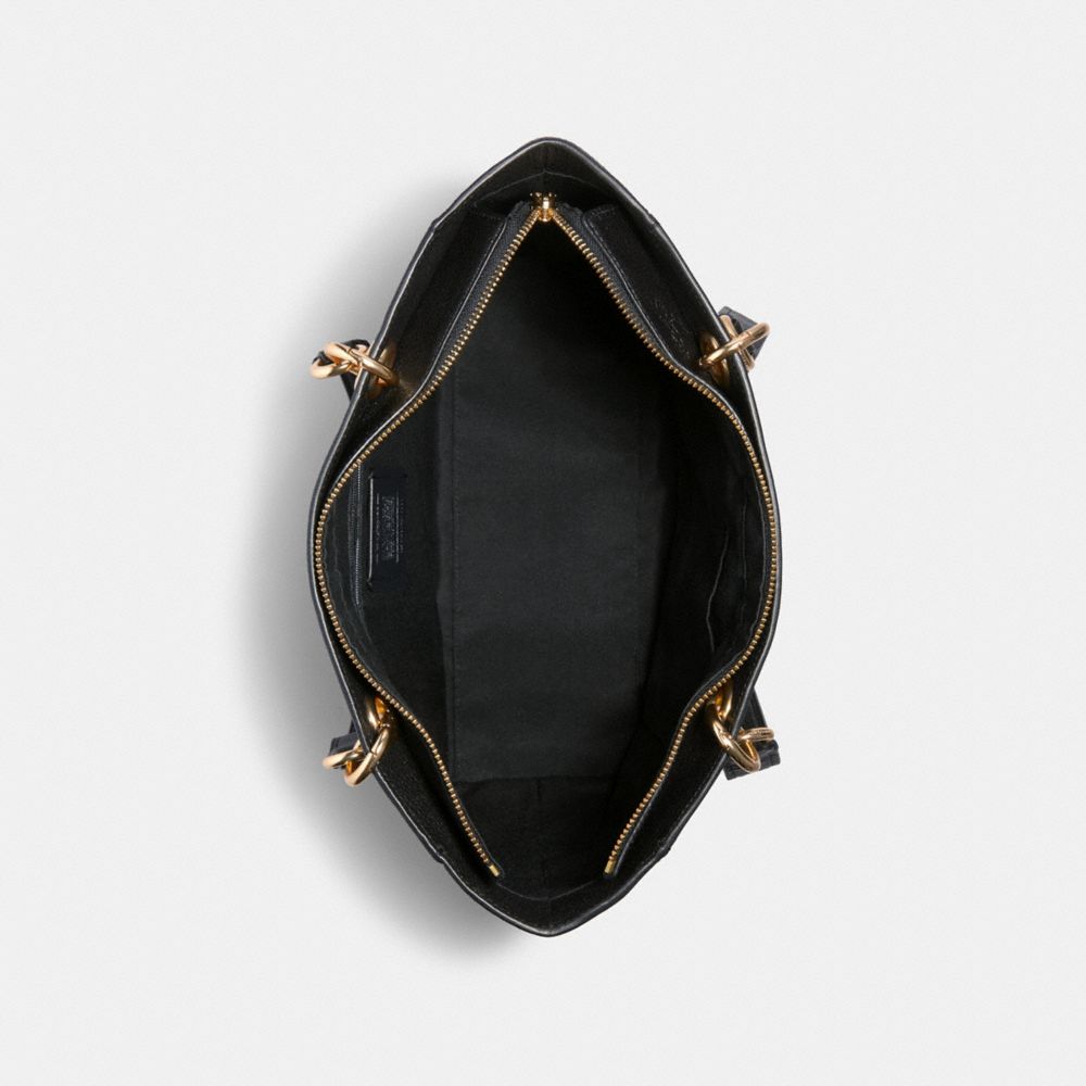 Refined pebble leather| Inside zip, cell phone and multifunction pockets| Zip-top closure, fabric lining| Handles with 10" drop| 11 3/4" (L) x 10" (H) x 5 1/4" (W)