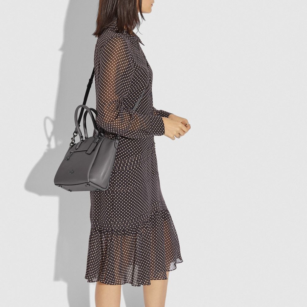 Polished pebble leather| Inside zip and snap pockets| Zip-top closure, fabric lining| Handles with 4 1/2" drop| Outside zip pocket| Detachable strap with 21 1/2" drop for shoulder or crossbody wear| Instantly change the look of your bag with an interchangeable strap.| 9 1/2" (L) x 8 1/4" (H) x 4 1/2" (W)| Also available in other sizes