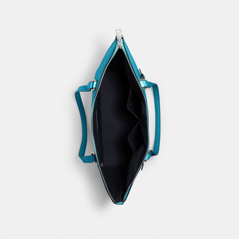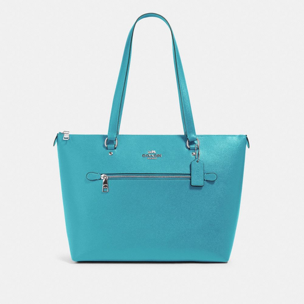 Crossgrain leather| Inside zip, cell phone and multifunction pockets| Zip-top closure, fabric lining| Handles with 10 1/4" drop| Outside zip pocket| 12 3/4" (L) x 10 1/2" (H) x 5 1/2" (W)