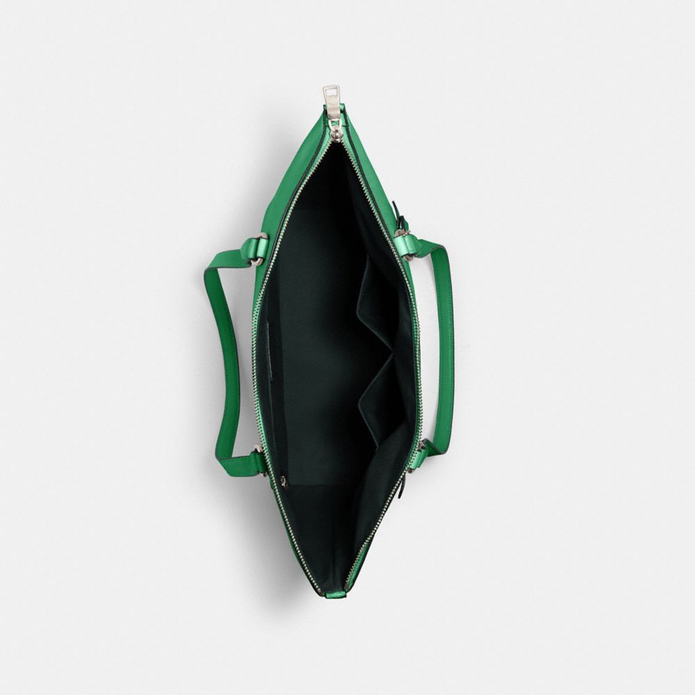 Crossgrain leather| Inside zip, cell phone and multifunction pockets| Zip-top closure, fabric lining| Handles with 10 1/4" drop| Outside zip pocket| 12 3/4" (L) x 10 1/2" (H) x 5 1/2" (W)