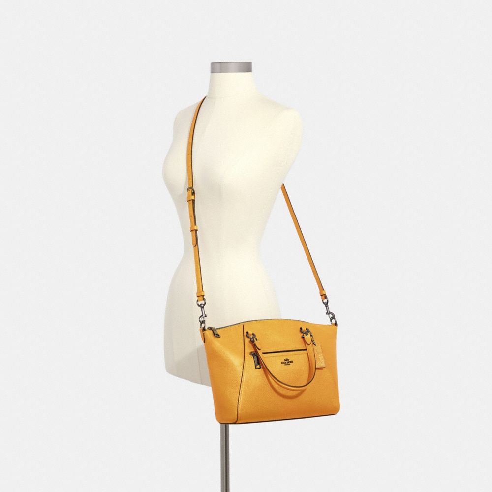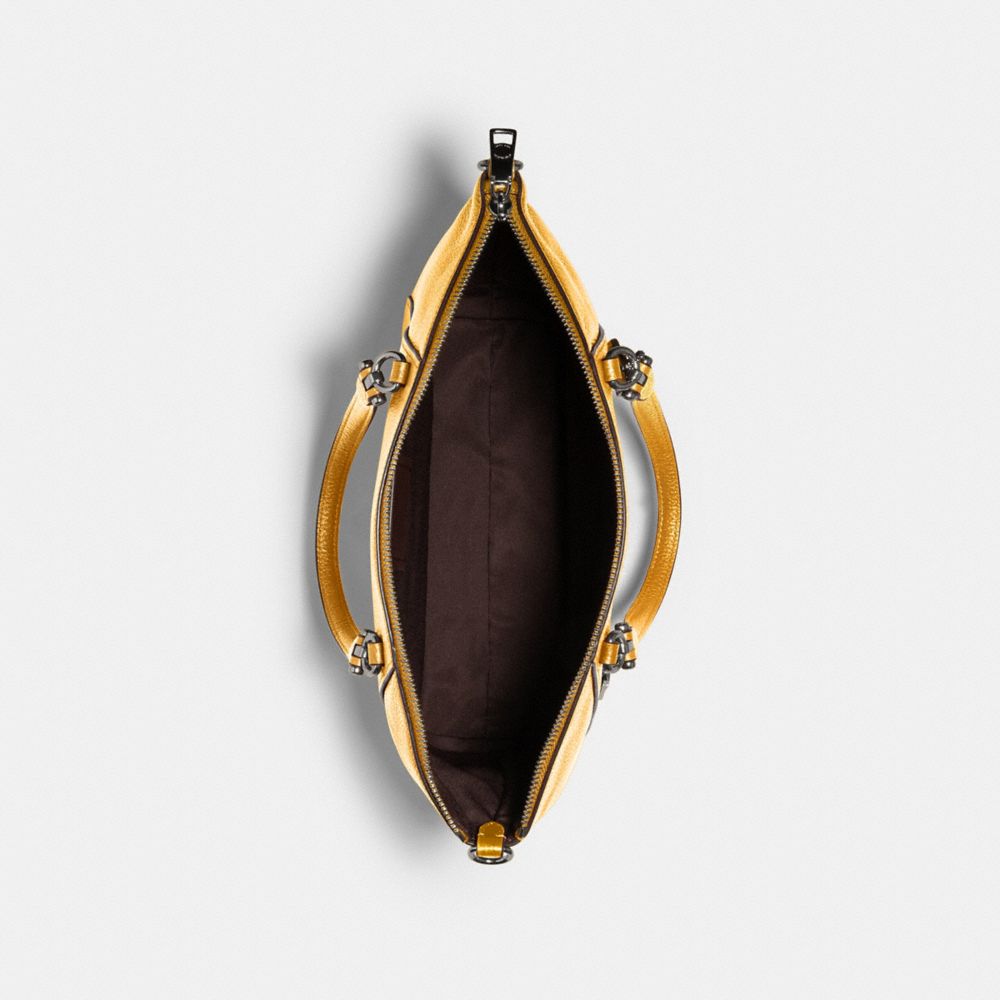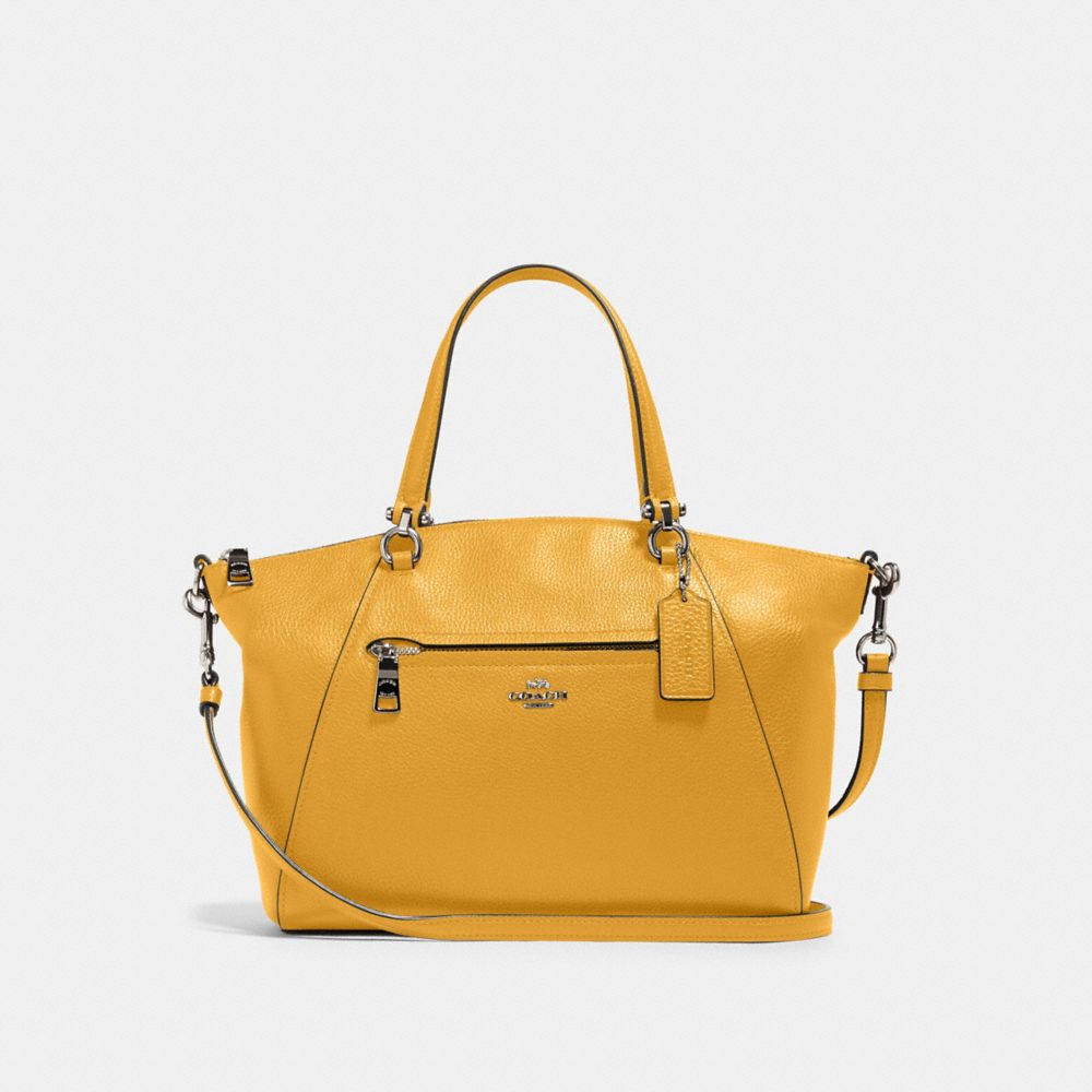 Refined pebble leather| Inside zip pocket| Zip-top closure, fabric lining| Handles with 5" drop| Outside zip pocket| Detachable strap with 21" drop for shoulder or crossbody wear| 10 1/2" (L) x 8 3/4" (H) x 3 3/4" (W)